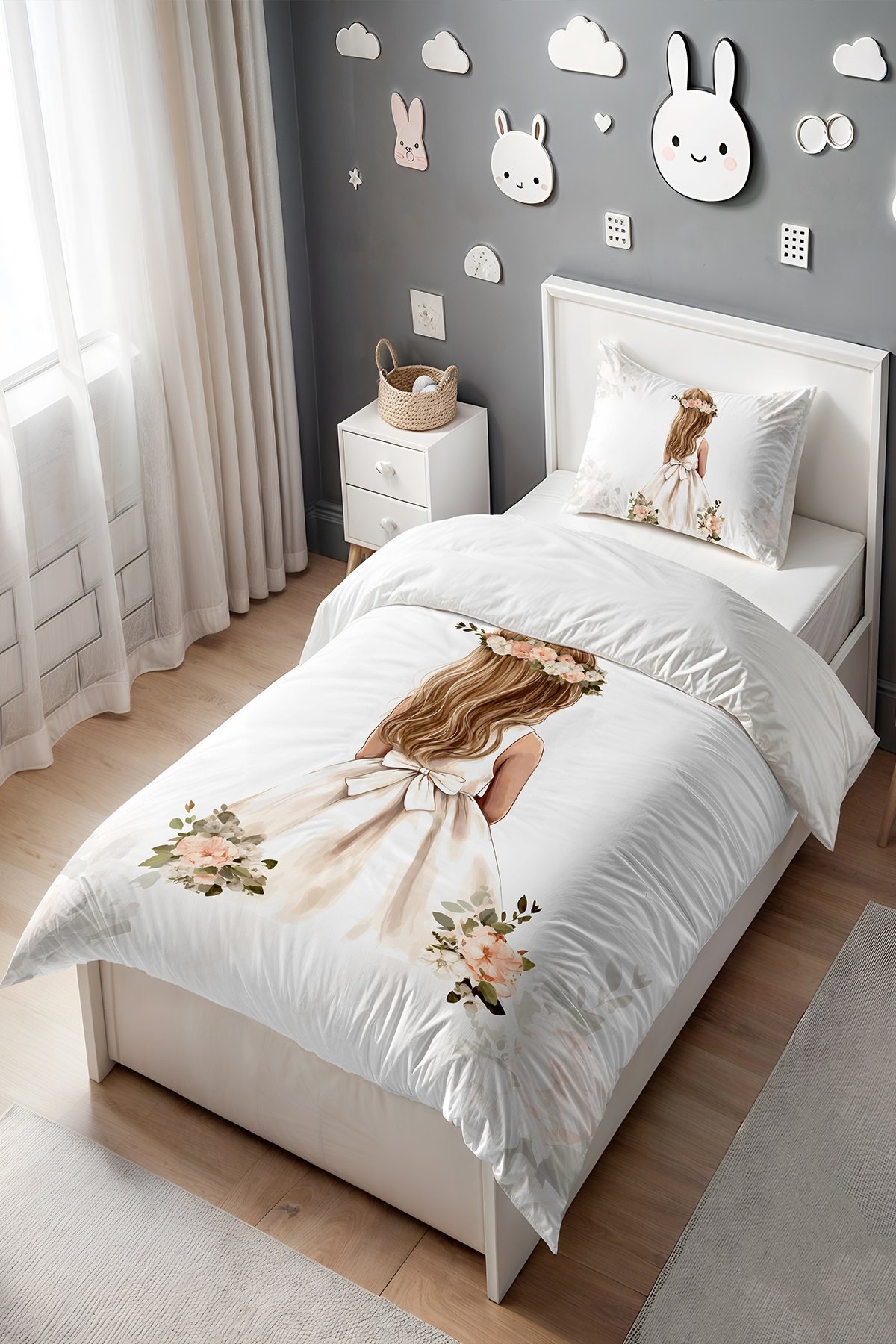 Sade Sarı Saçlı Prenses Desenli Tek Kişilik Bebek Çocuk Nevresim Seti