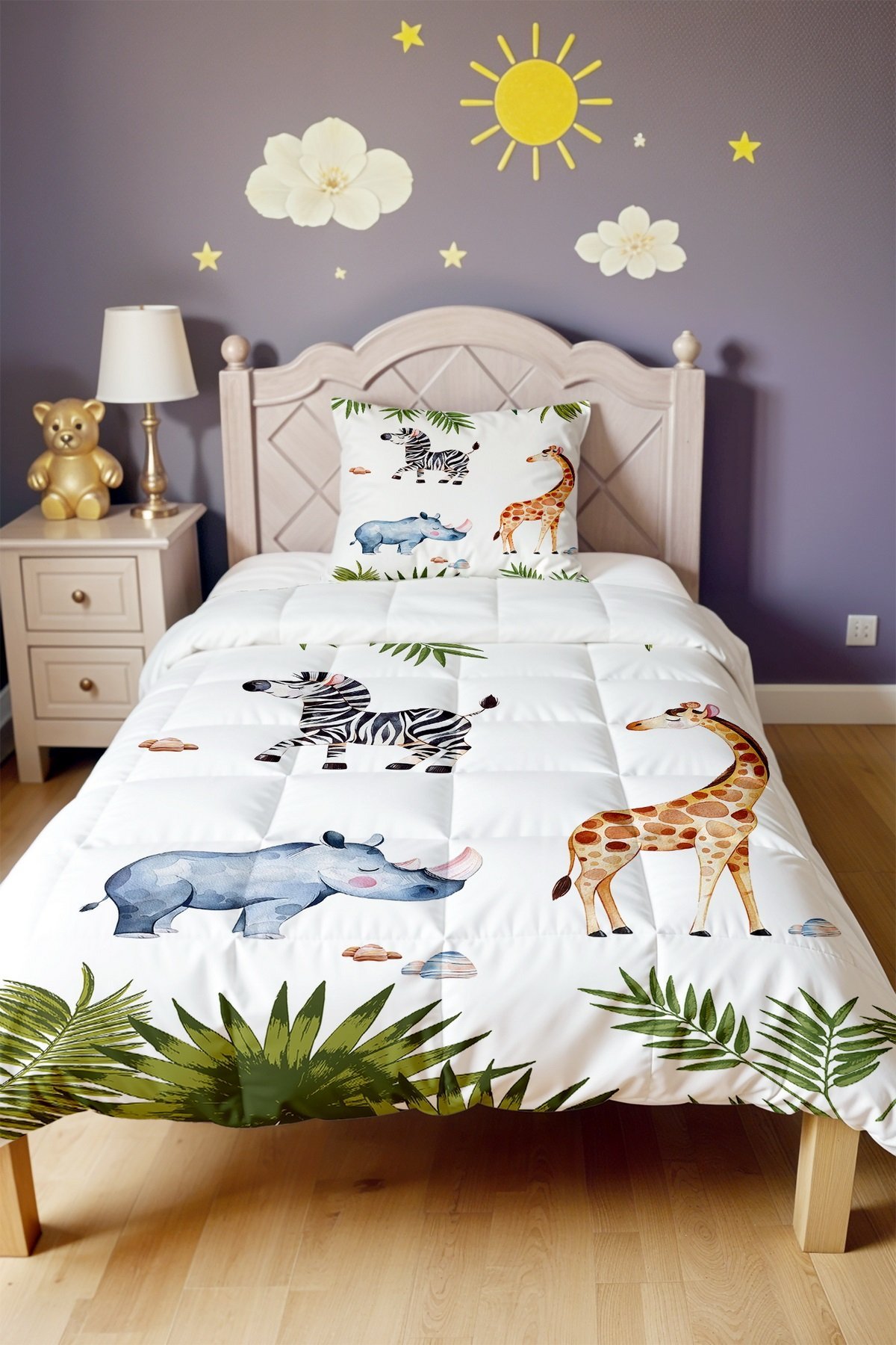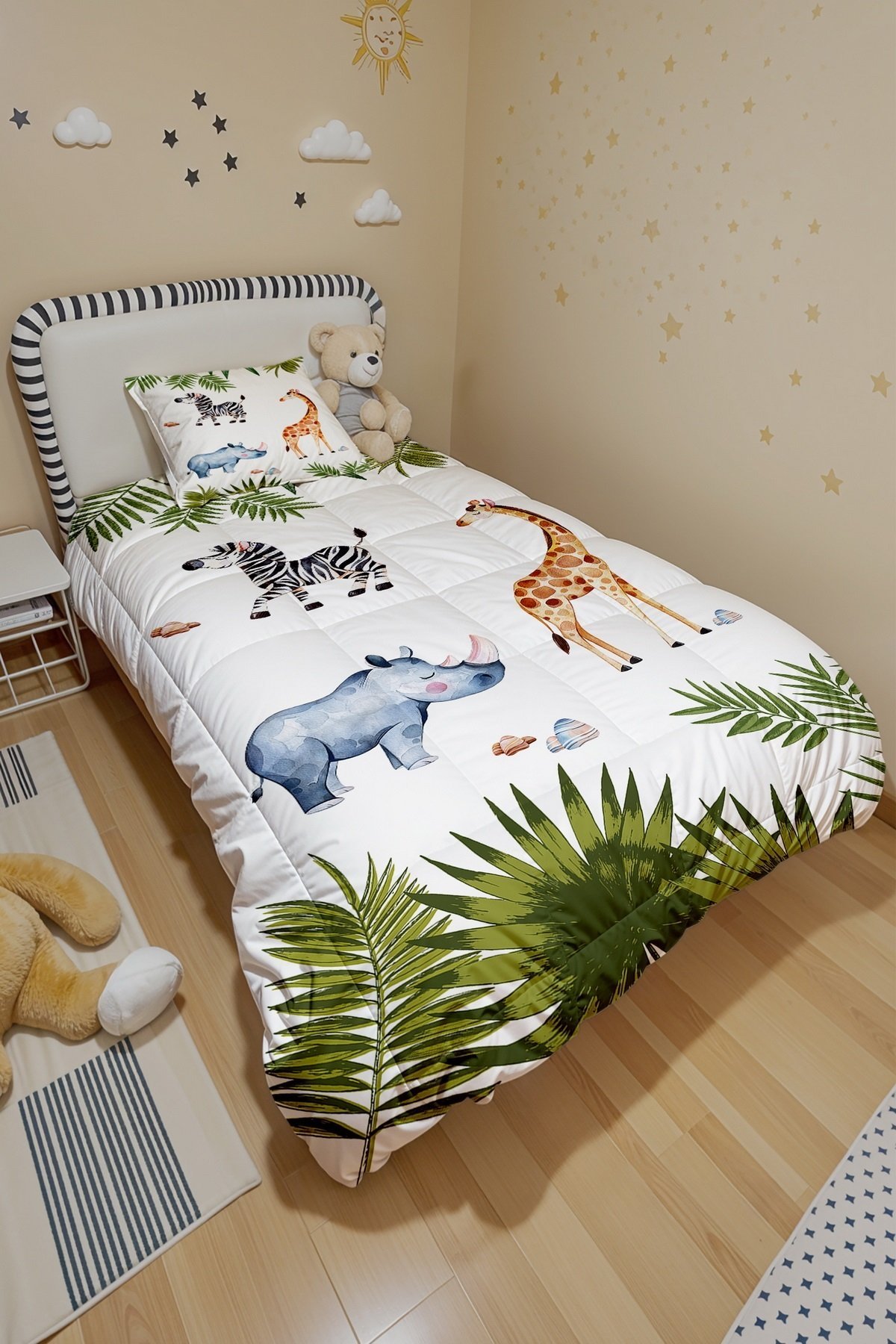 Safari Dostları Desenli Tek Kişilik Yorgan ve Yastık Kılıfı