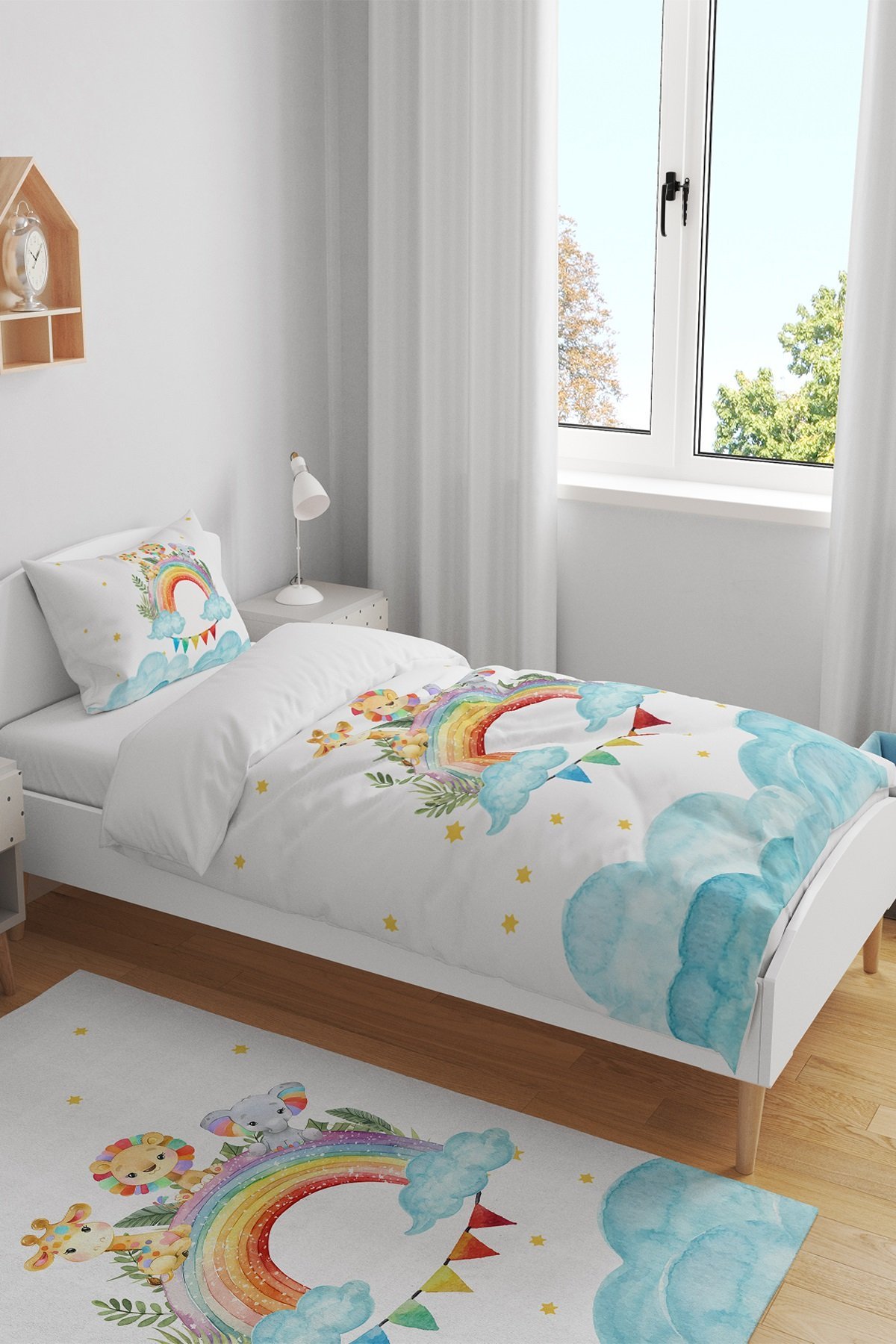 Safari Parıldayan Gökkuşağı Desenli Tek Kişilik Bebek Çocuk Nevresim Seti