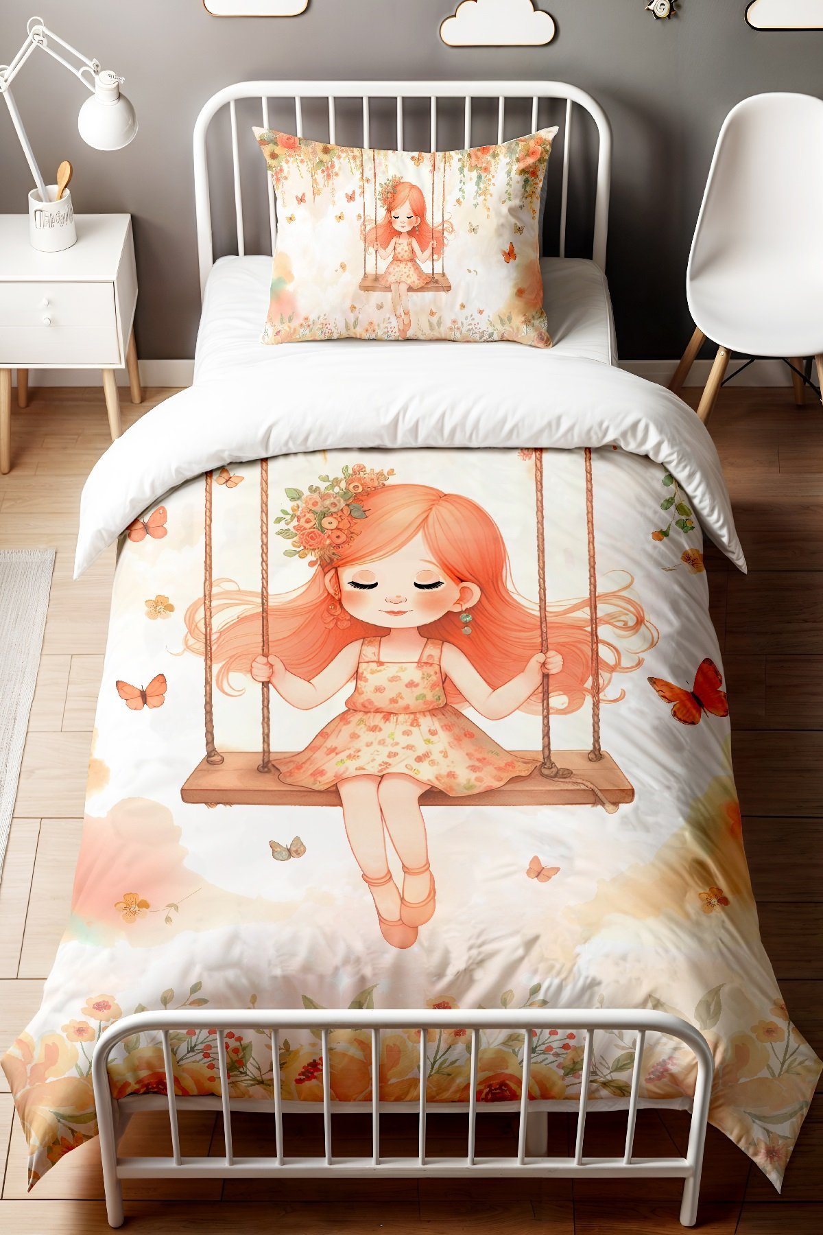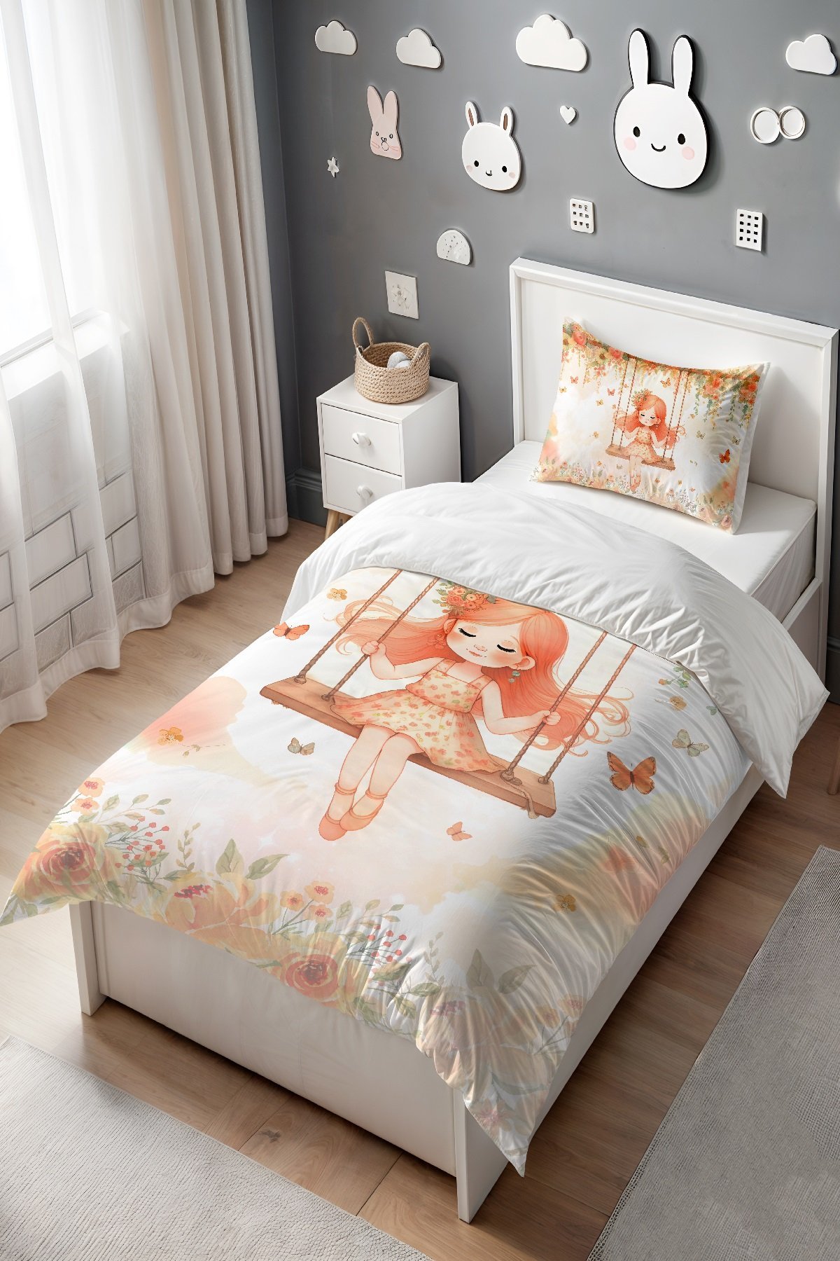 Salıncaktaki Sevimki Kız Desenli Tek Kişilik Bebek Çocuk Nevresim Seti