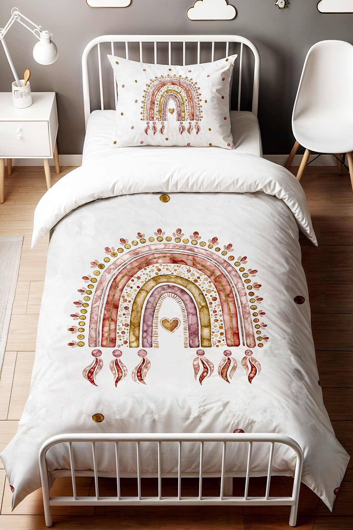 Sarı Simli Gökkuşağı Desenli Tek Kişilik Bebek Çocuk Nevresim Seti