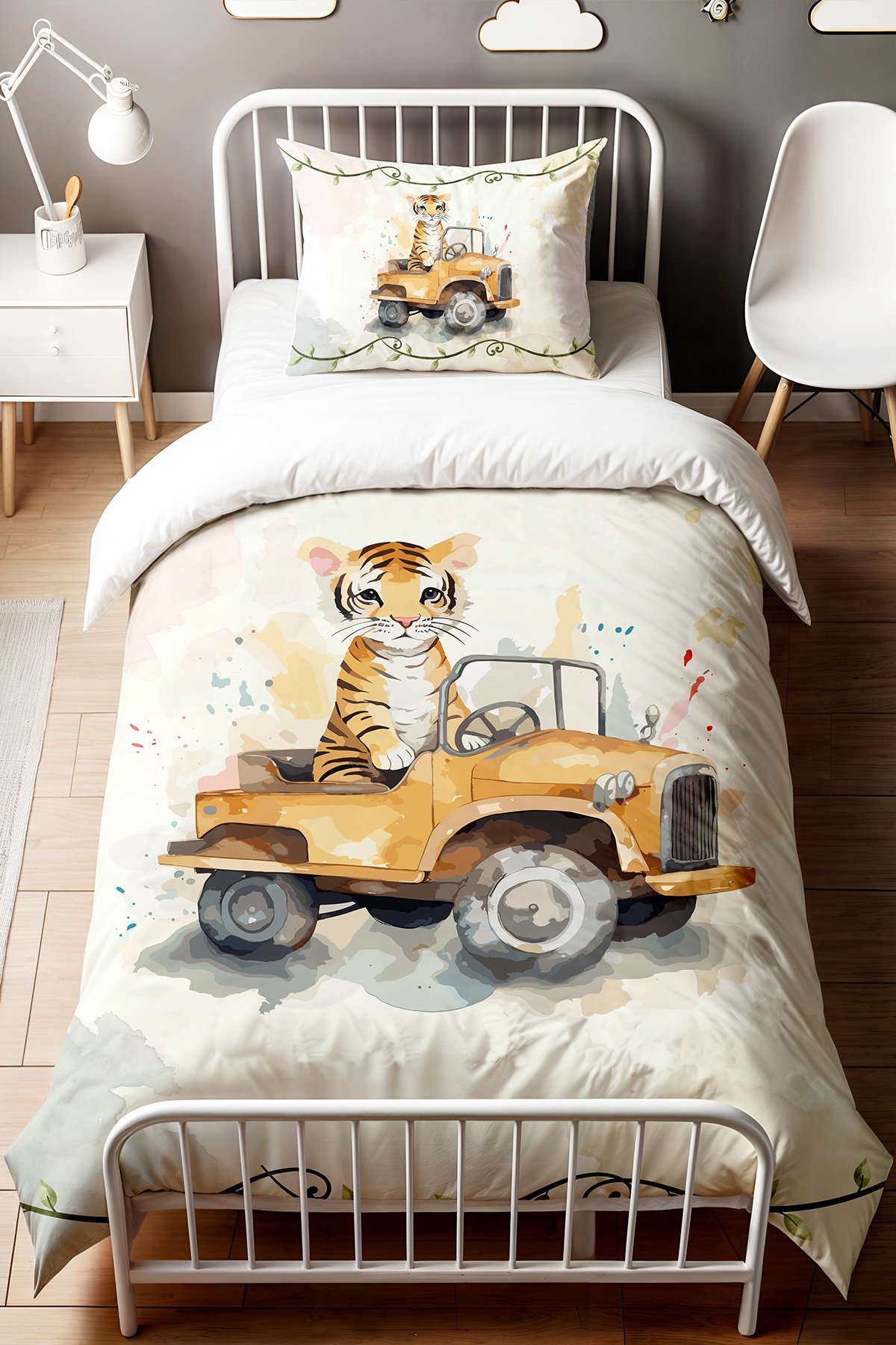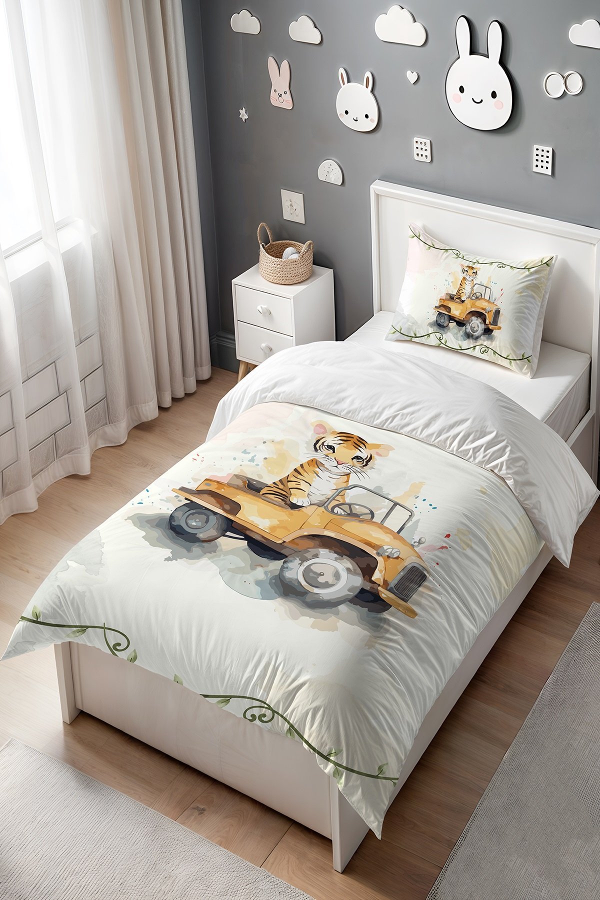 Sarmaşıklı Kaplan Desenli Tek Kişilik Bebek Çocuk Nevresim Seti