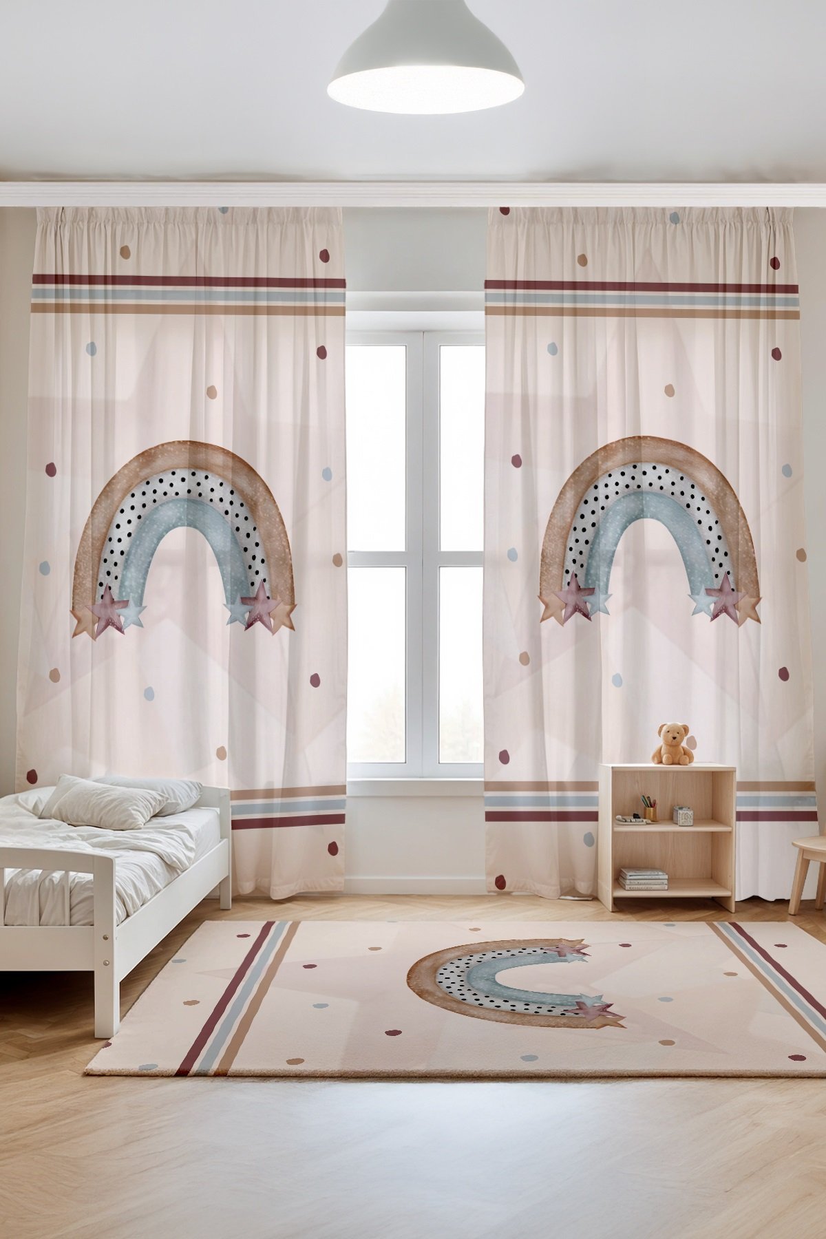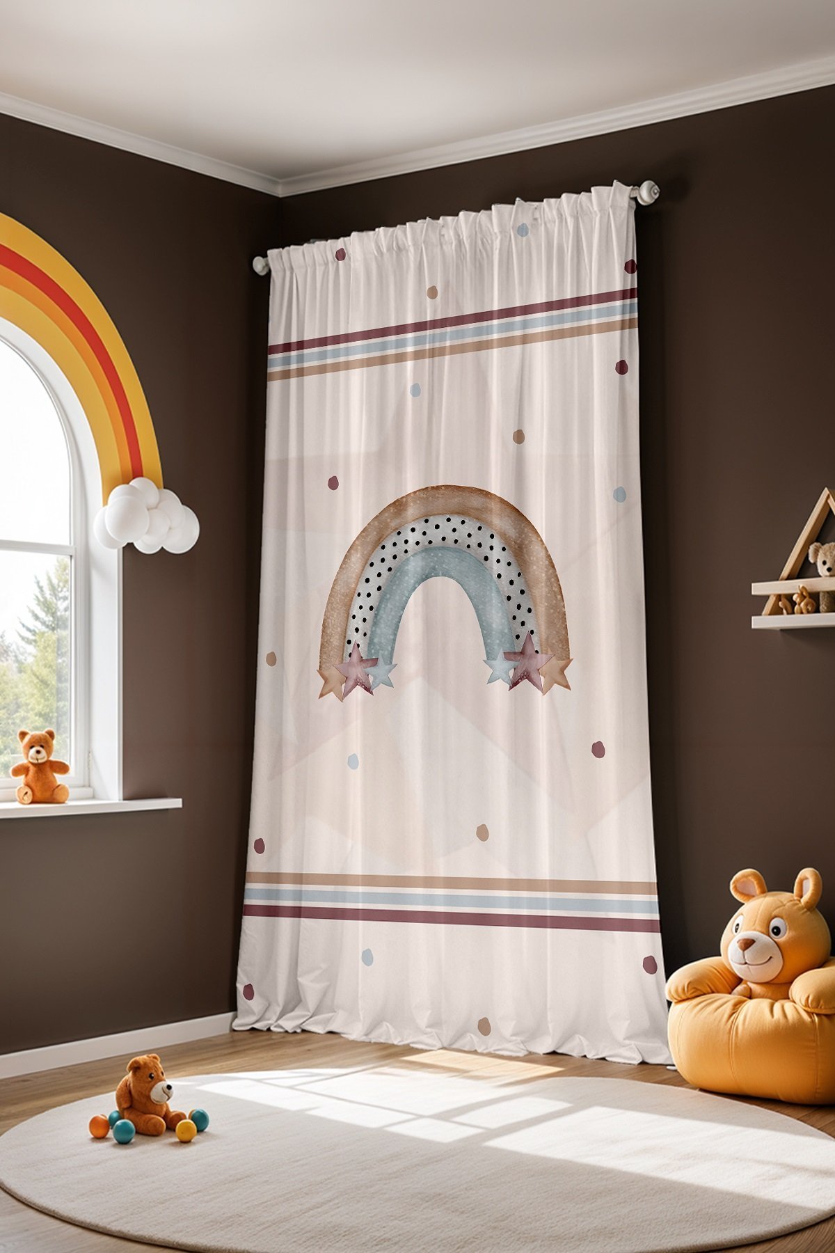 Şeritli Kahve Tonları Gökkuşağı Desenli Çocuk Bebek Odası Fon Perde (Tek Kanat Fiyatlandırma)