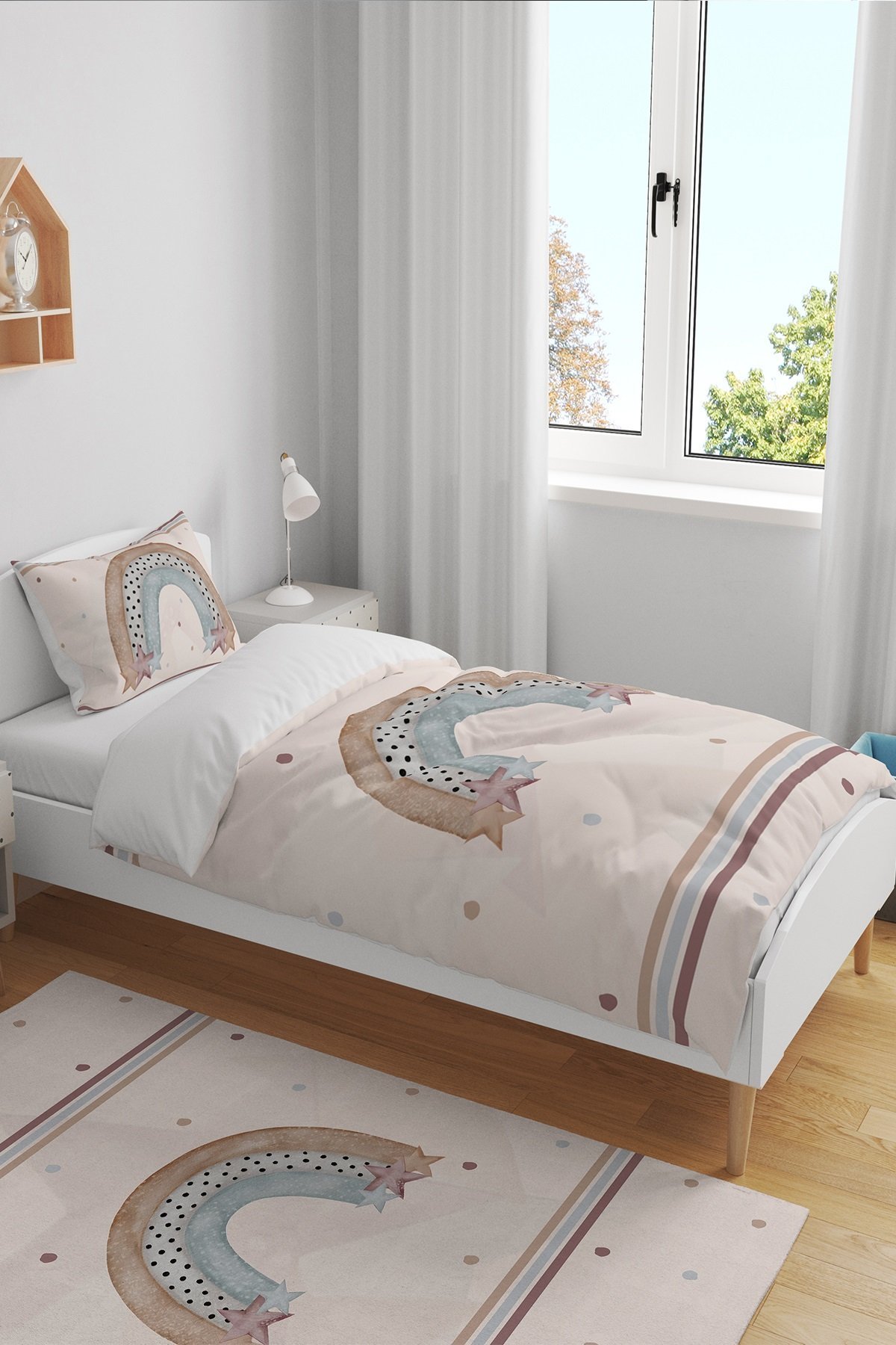 Şeritli Kahve Tonları Gökkuşağı Desenli Tek Kişilik Bebek Çocuk Nevresim Seti