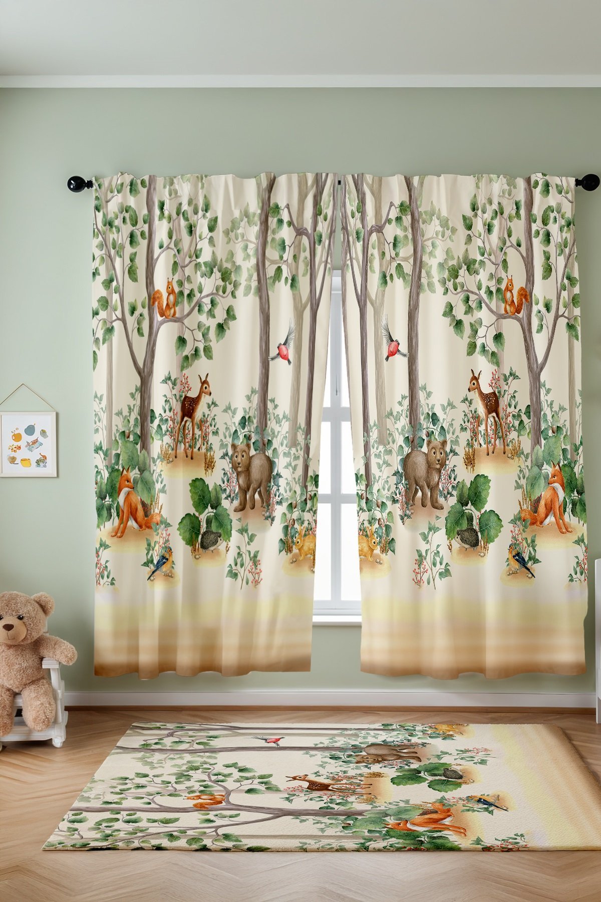 Sevimli Orman Hayvanları Desenli Çocuk Bebek Odası Fon Perde (Tek Kanat Fiyatlandırma)