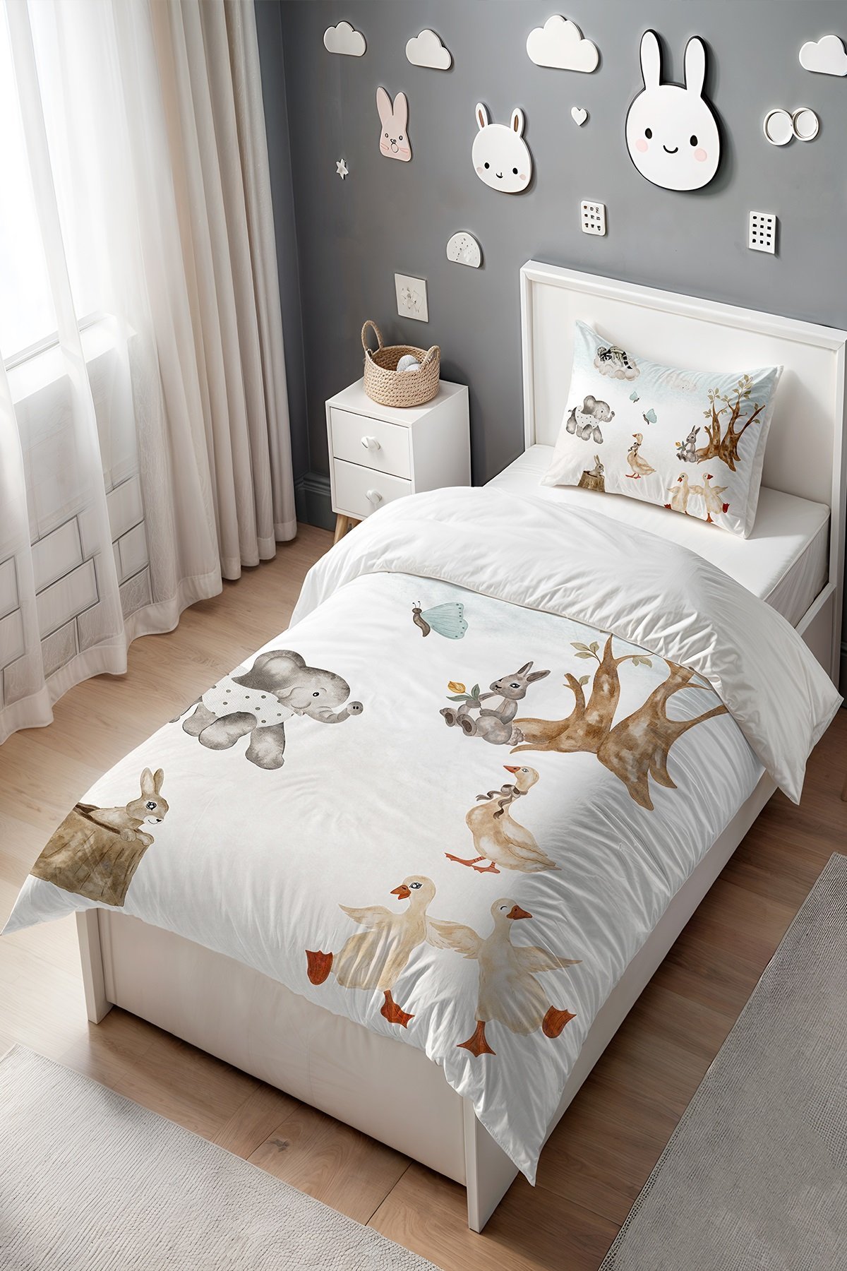 Sevimli Orman Hayvanları Desenli Tek Kişilik Bebek Çocuk Nevresim Seti