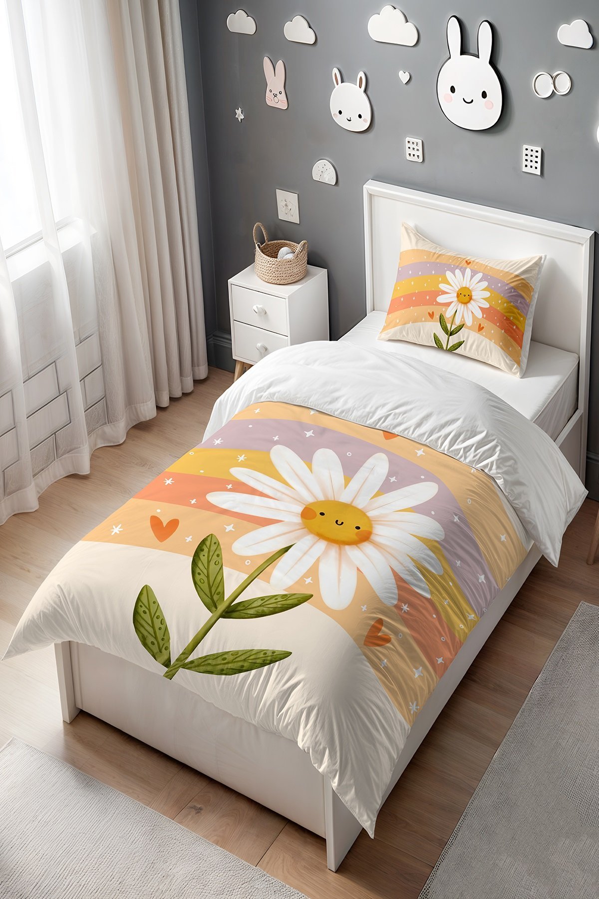 Sevimli Papatya Desenli Tek Kişilik Bebek Çocuk Nevresim Seti