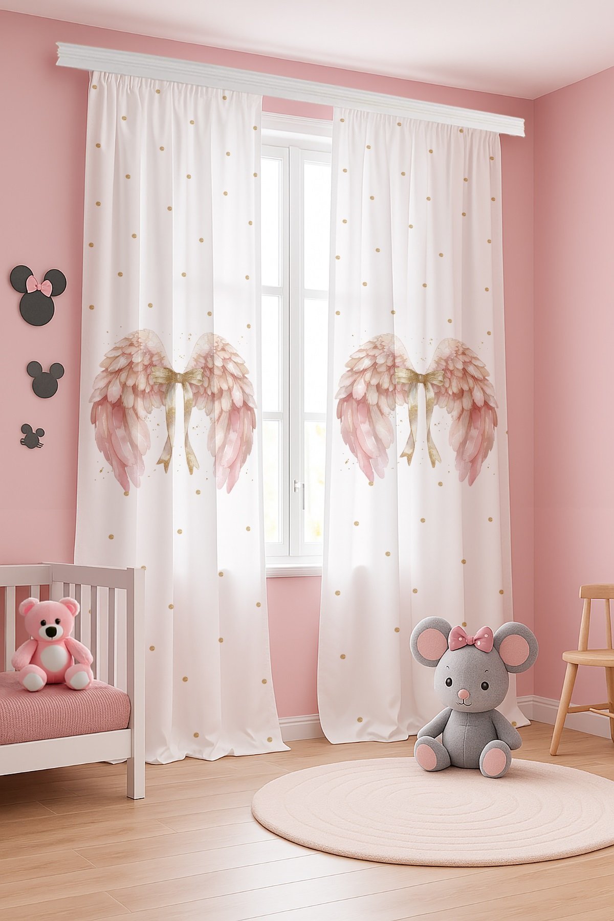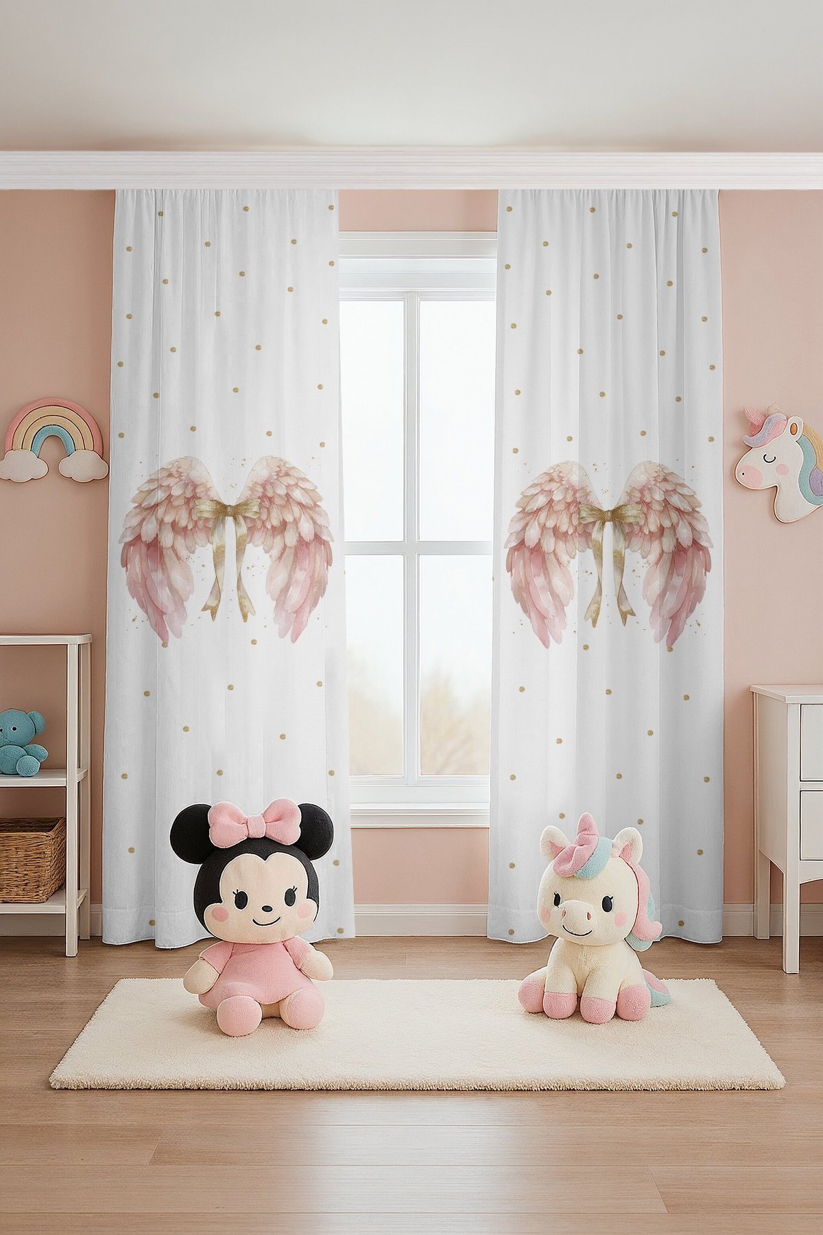 Simli Fiyonklu Peri Kanadı Desenli Çocuk Bebek Odası Fon Perde (Tek Kanat Fiyatlandırma)