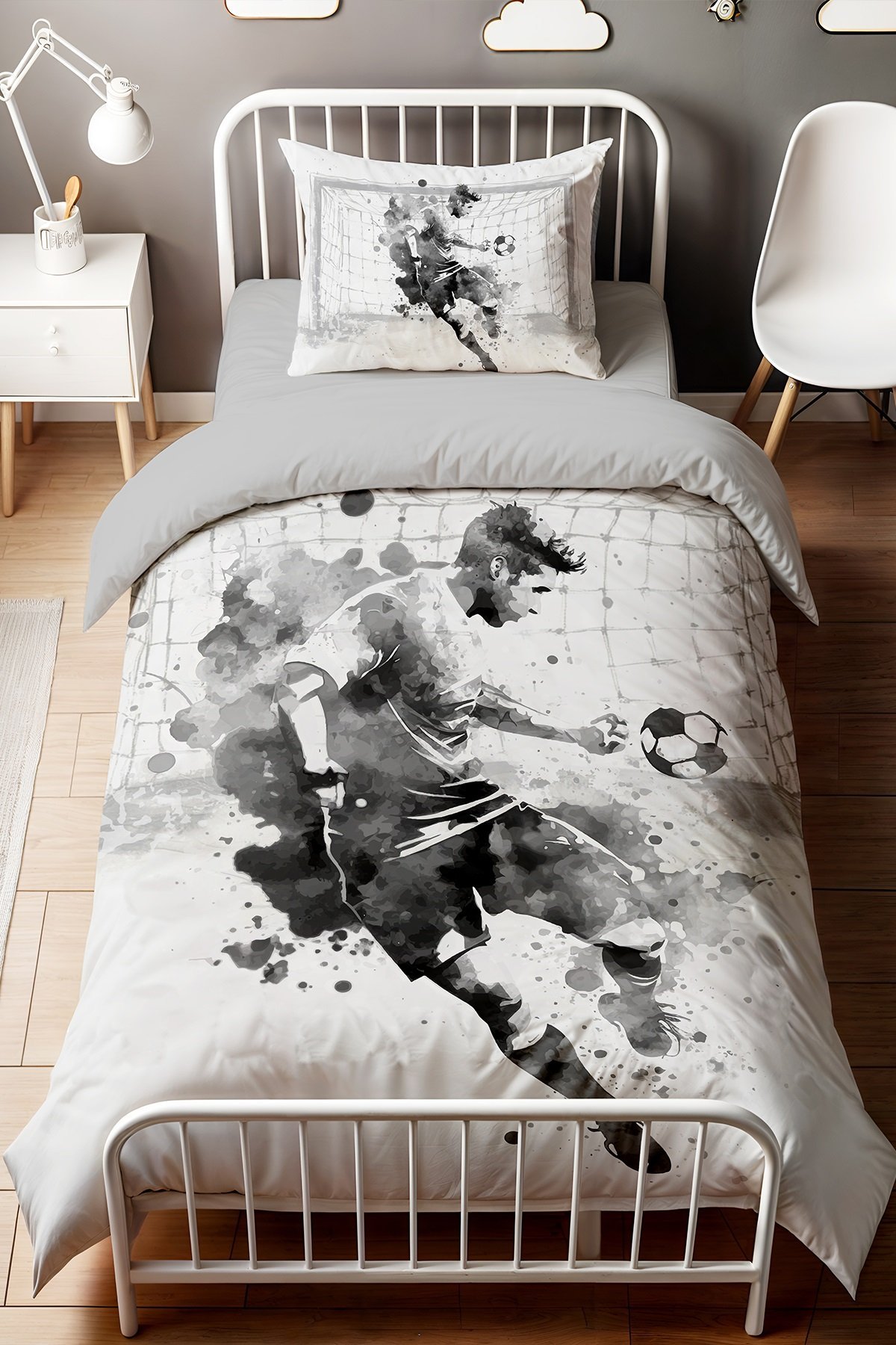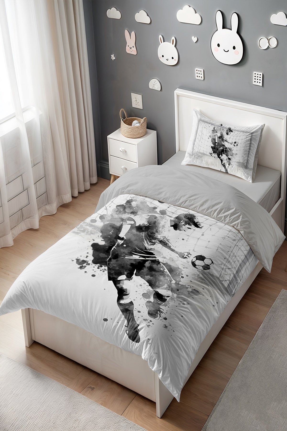 Siyah Beyaz Futbolcu Desenli Tek Kişilik Bebek Çocuk Nevresim Seti