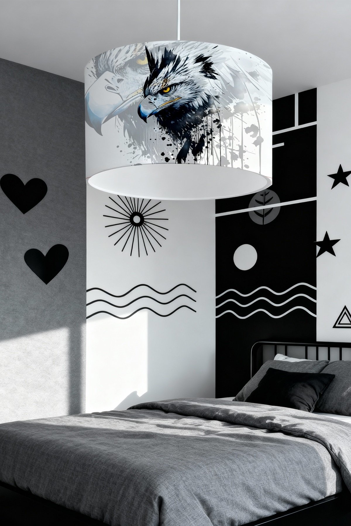 Siyah Beyaz Kartal Desenli Çocuk Odası Avize