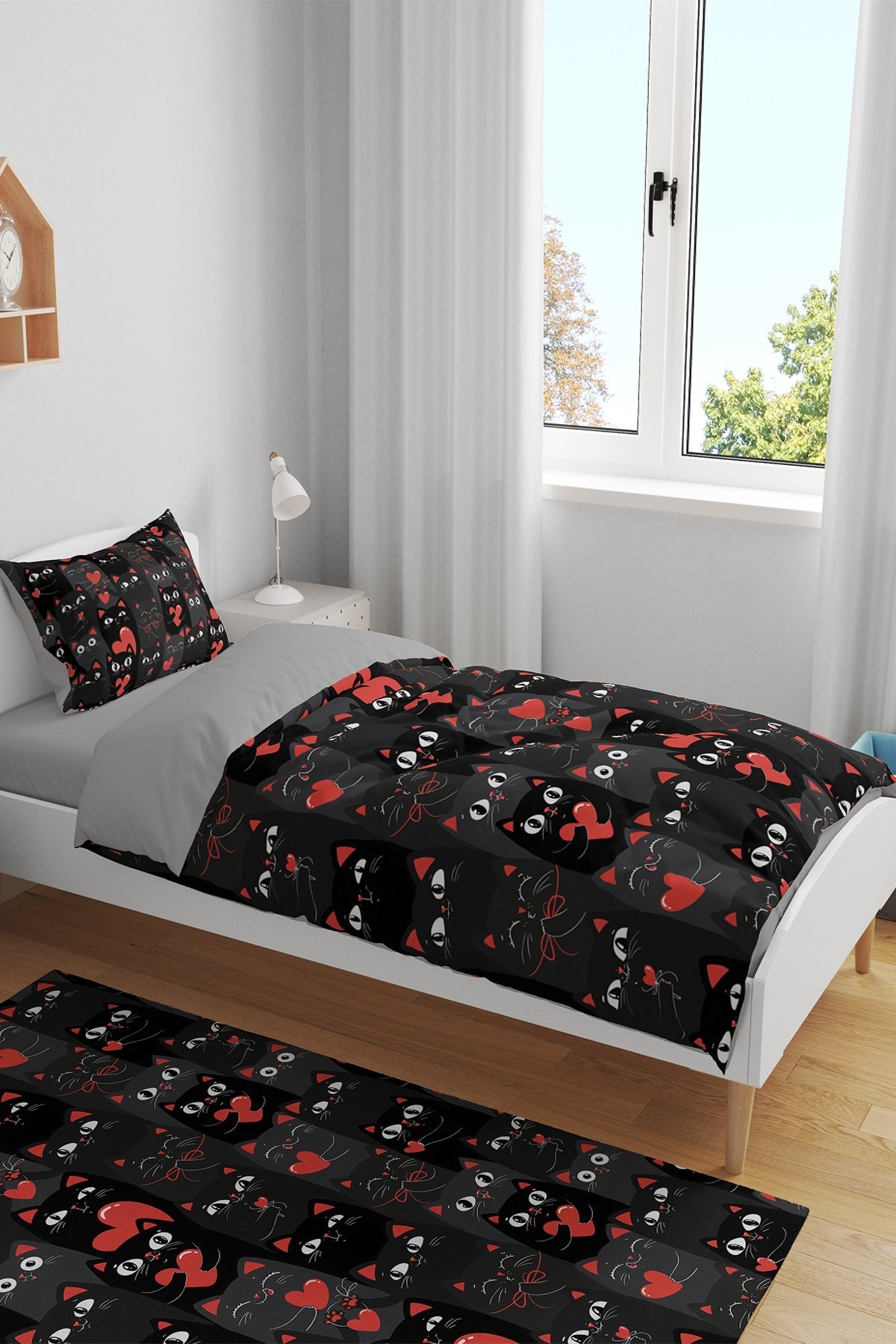 Siyah Kediler Desenli Tek Kişilik Bebek Çocuk Nevresim Seti