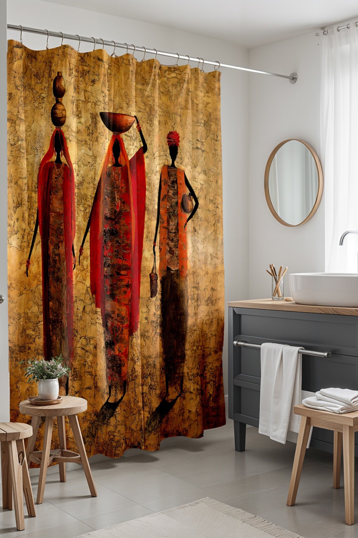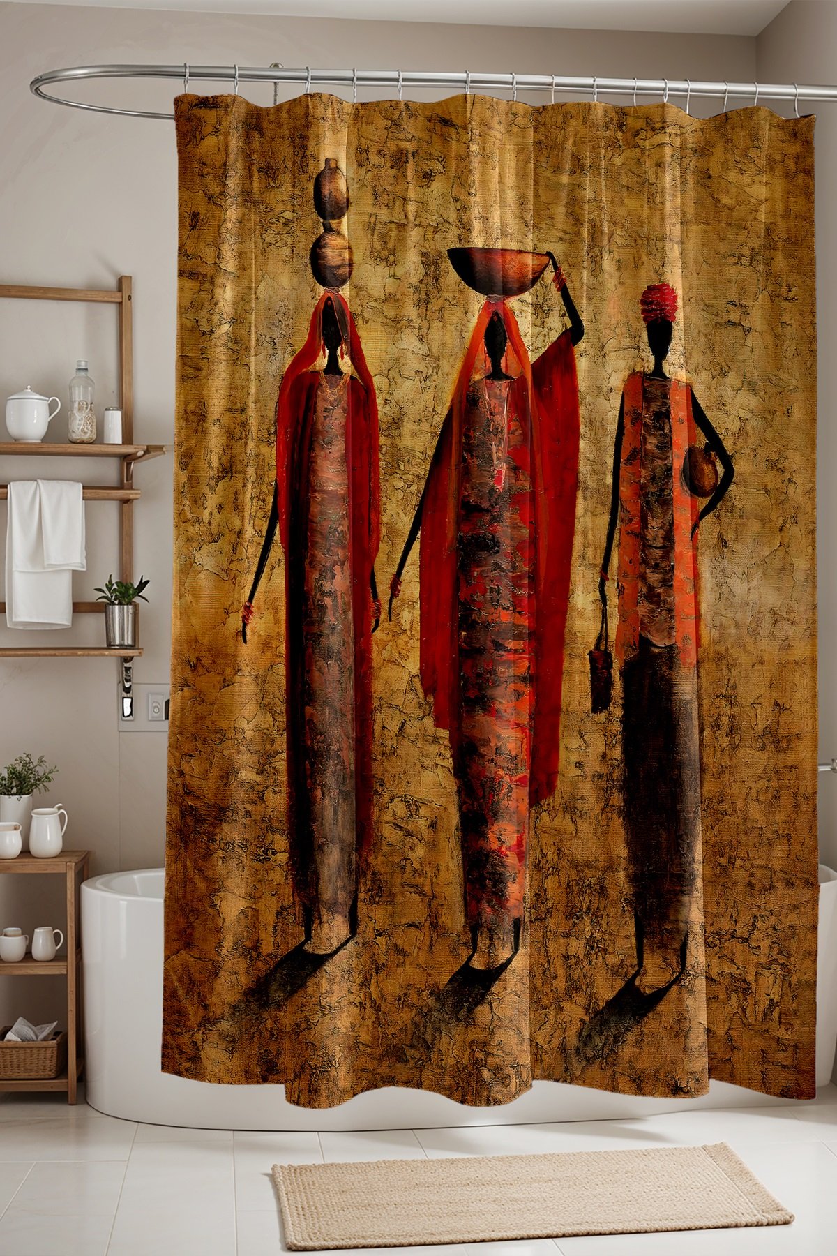 Siyahi Afrikalı Kadınlar Silüeti Desenli Duş Perdesi Küvet Perdesi 175x200cm