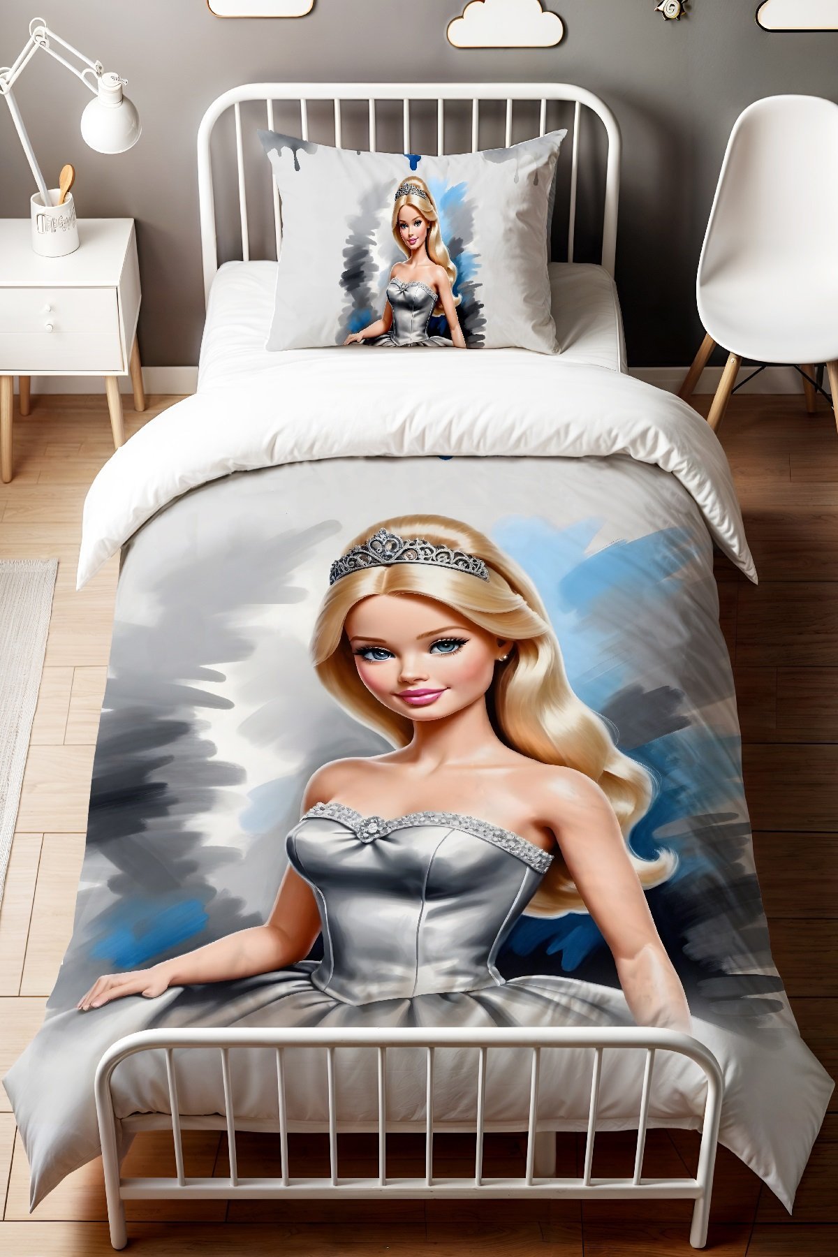 Taçlı Barbi Desenli Tek Kişilik Bebek Çocuk Nevresim Seti
