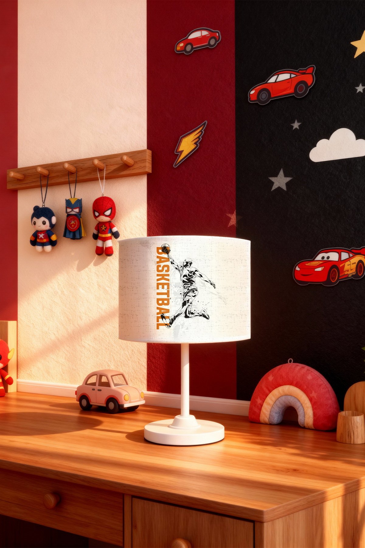 Turuncu Gri Basketbolcu Desenli Çocuk Odası Abajur