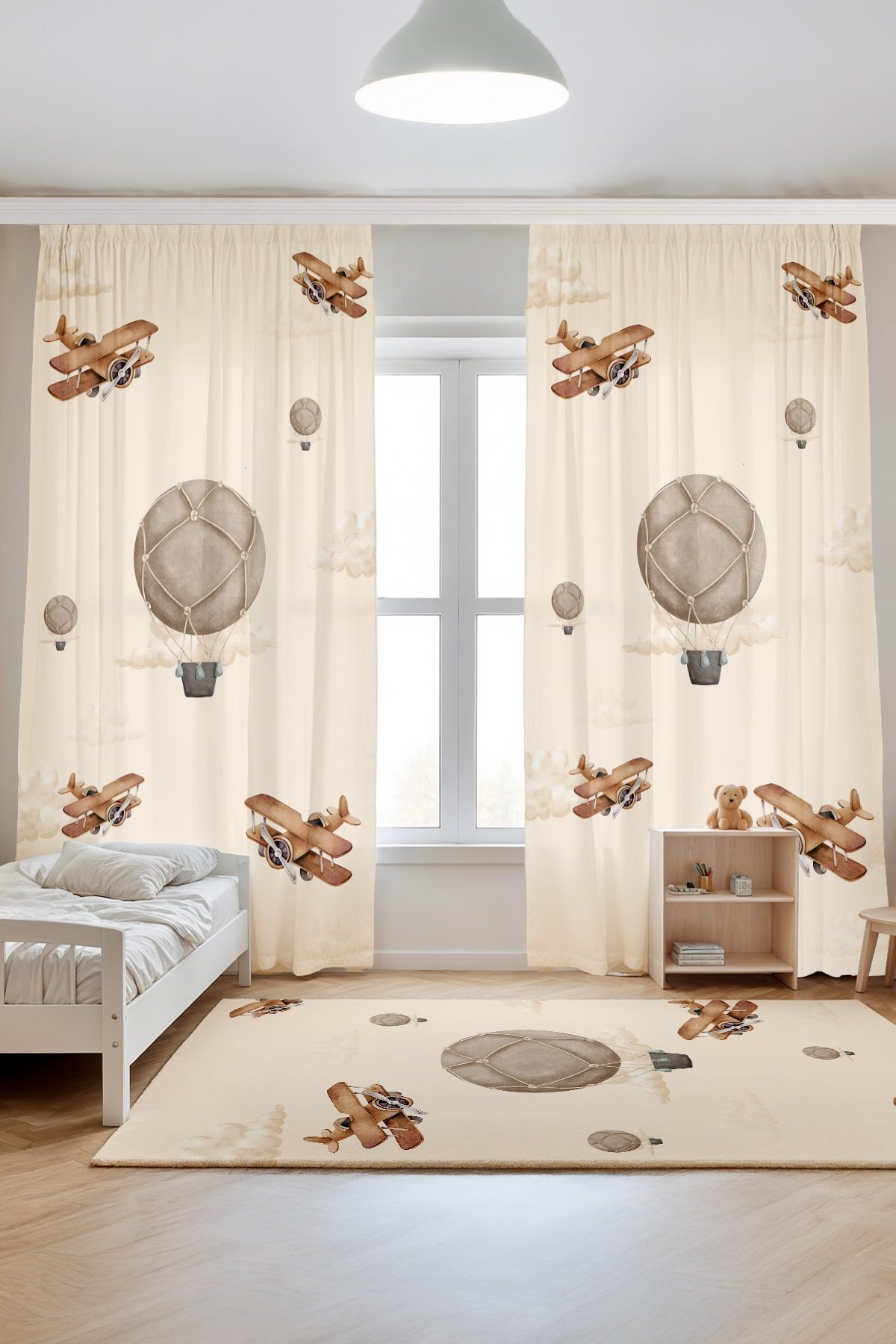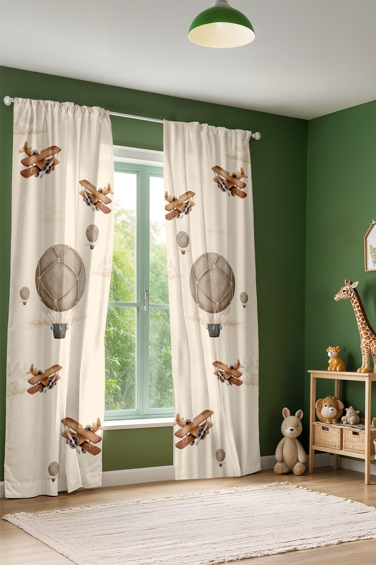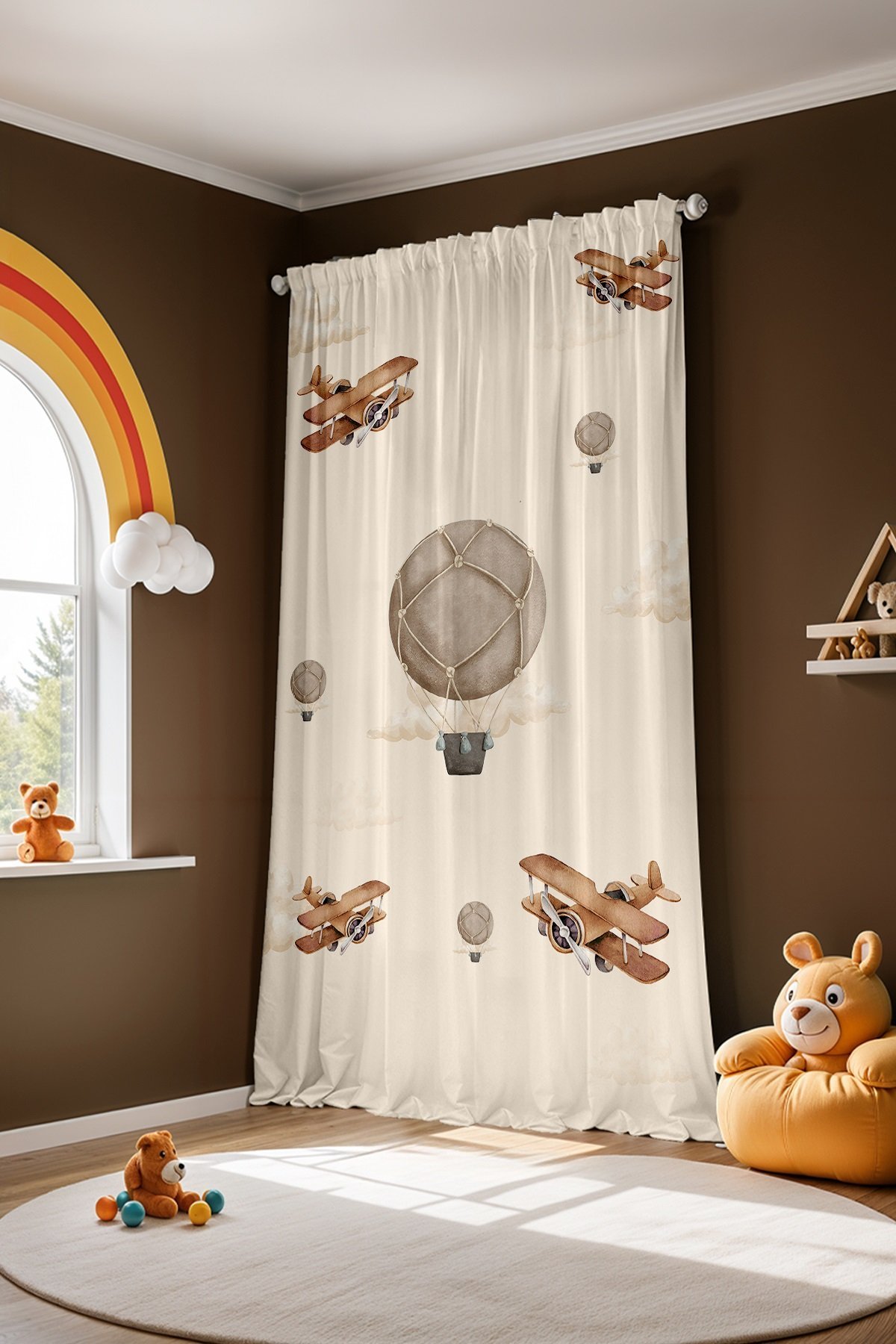 Uçak Balon Macera Desenli Çocuk Bebek Odası Fon Perde (Tek Kanat Fiyatlandırma)