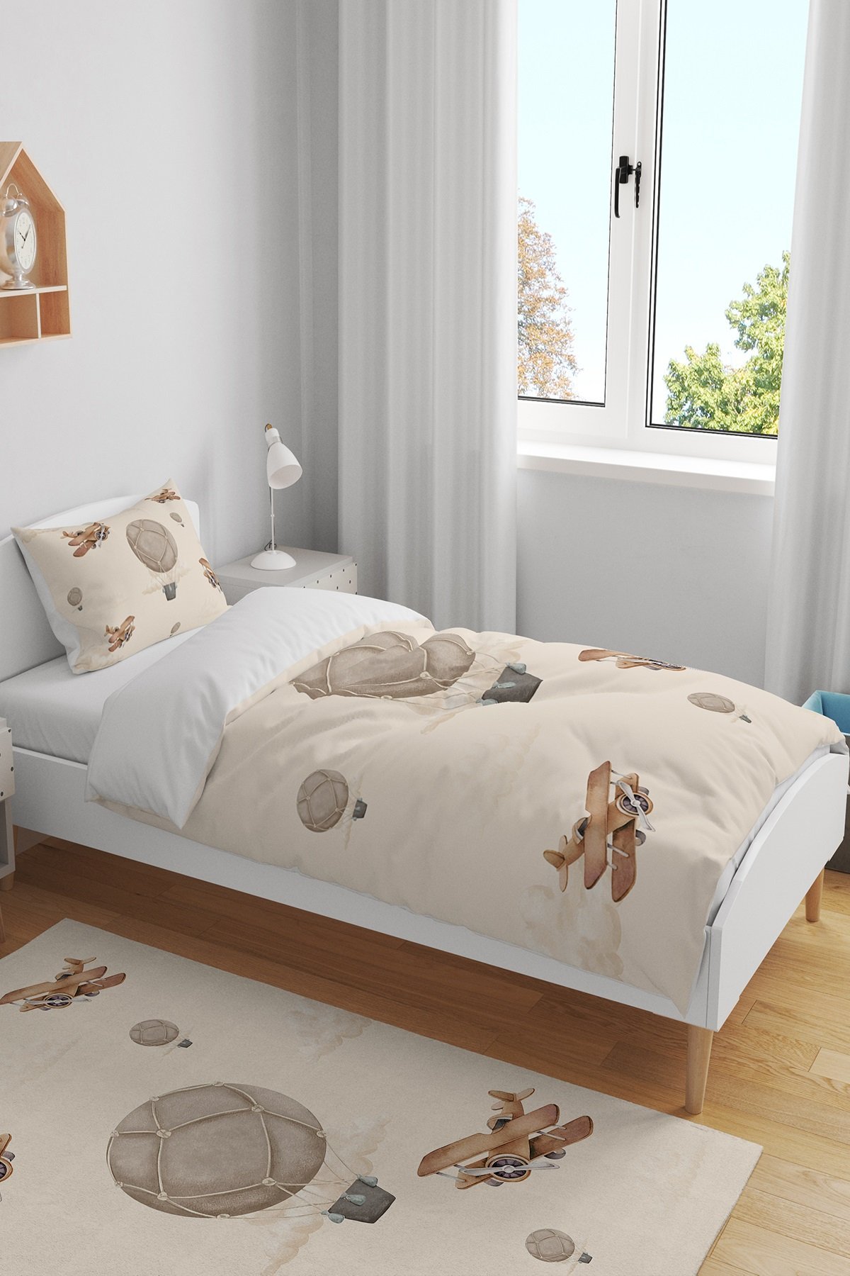 Uçak Balon Macera Desenli Tek Kişilik Bebek Çocuk Nevresim Seti