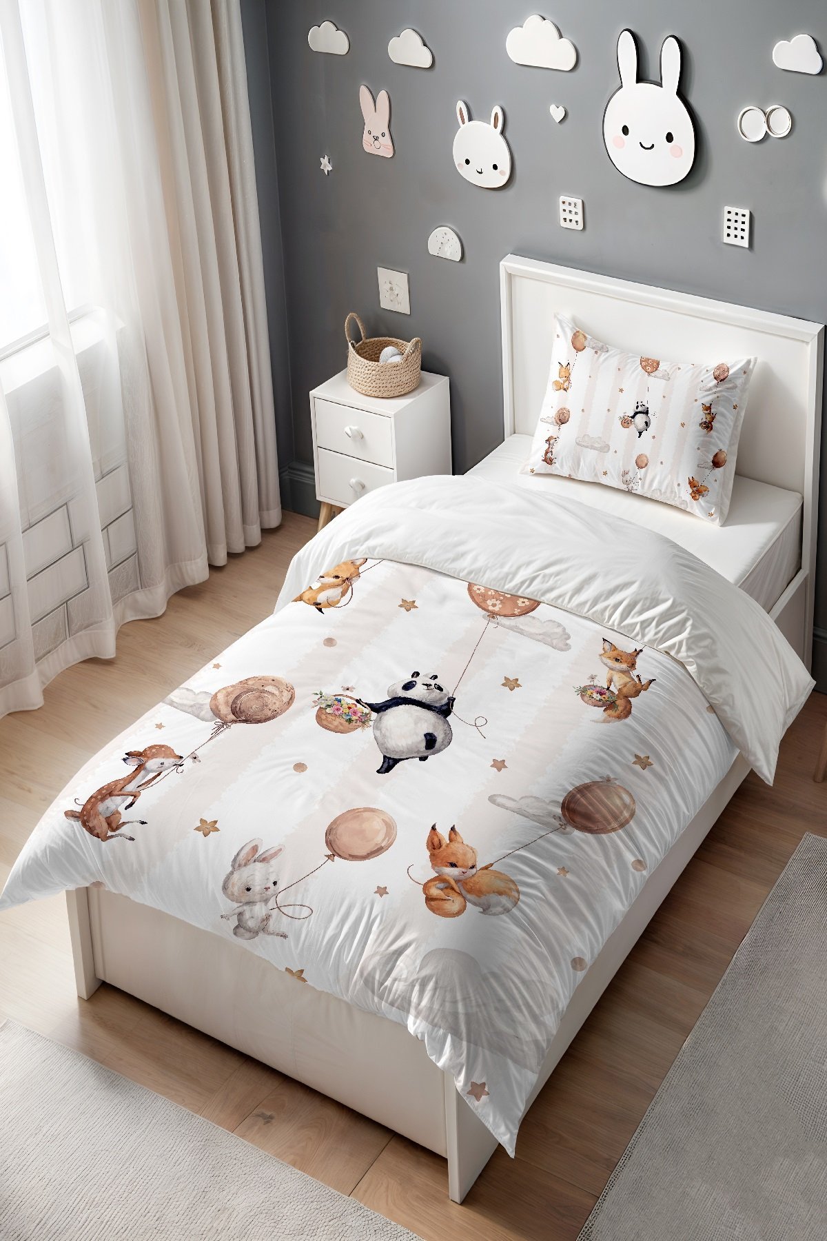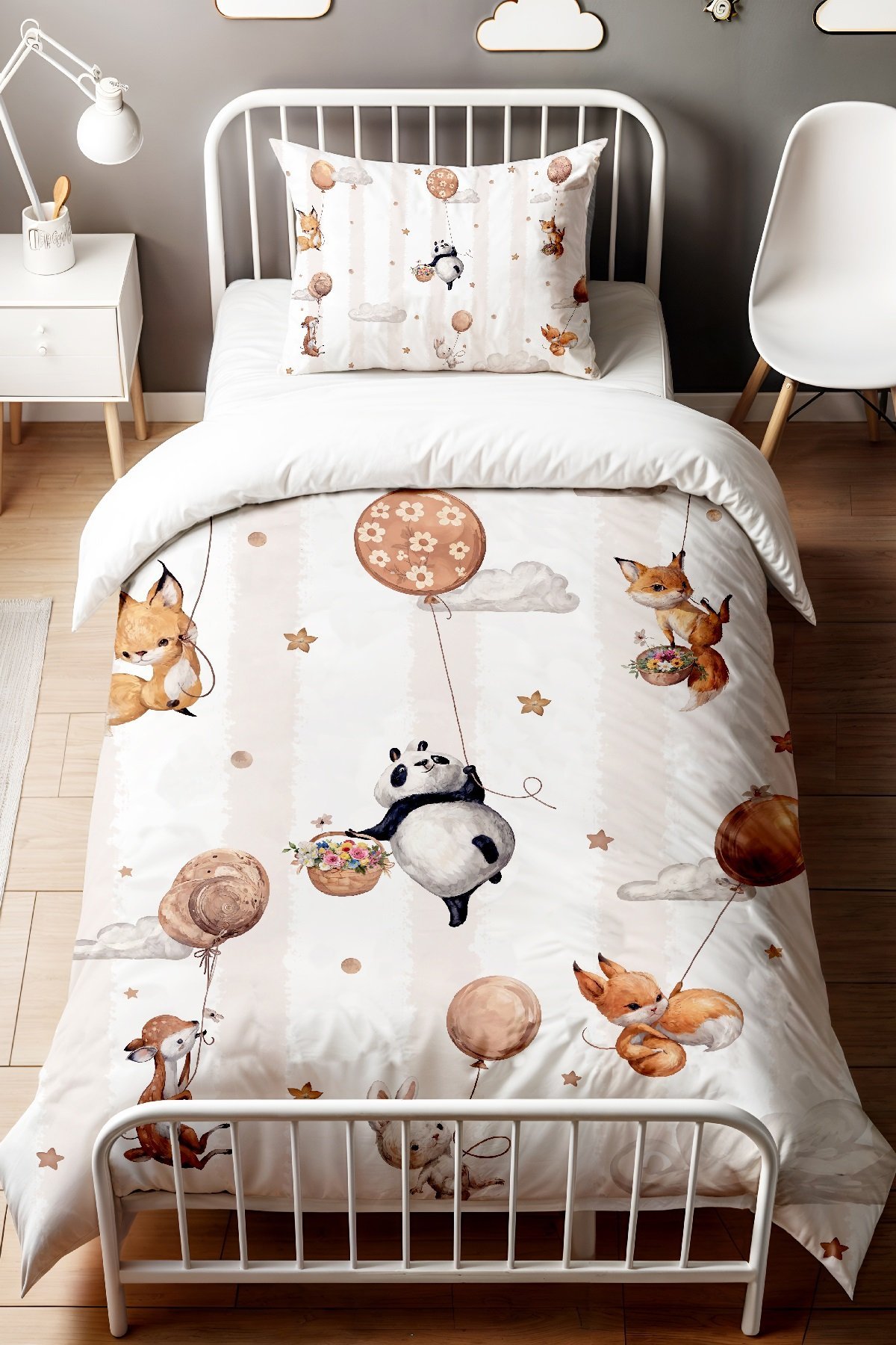 Uçan Balonlu Hayvanlar Desenli Tek Kişilik Bebek Çocuk Nevresim Seti
