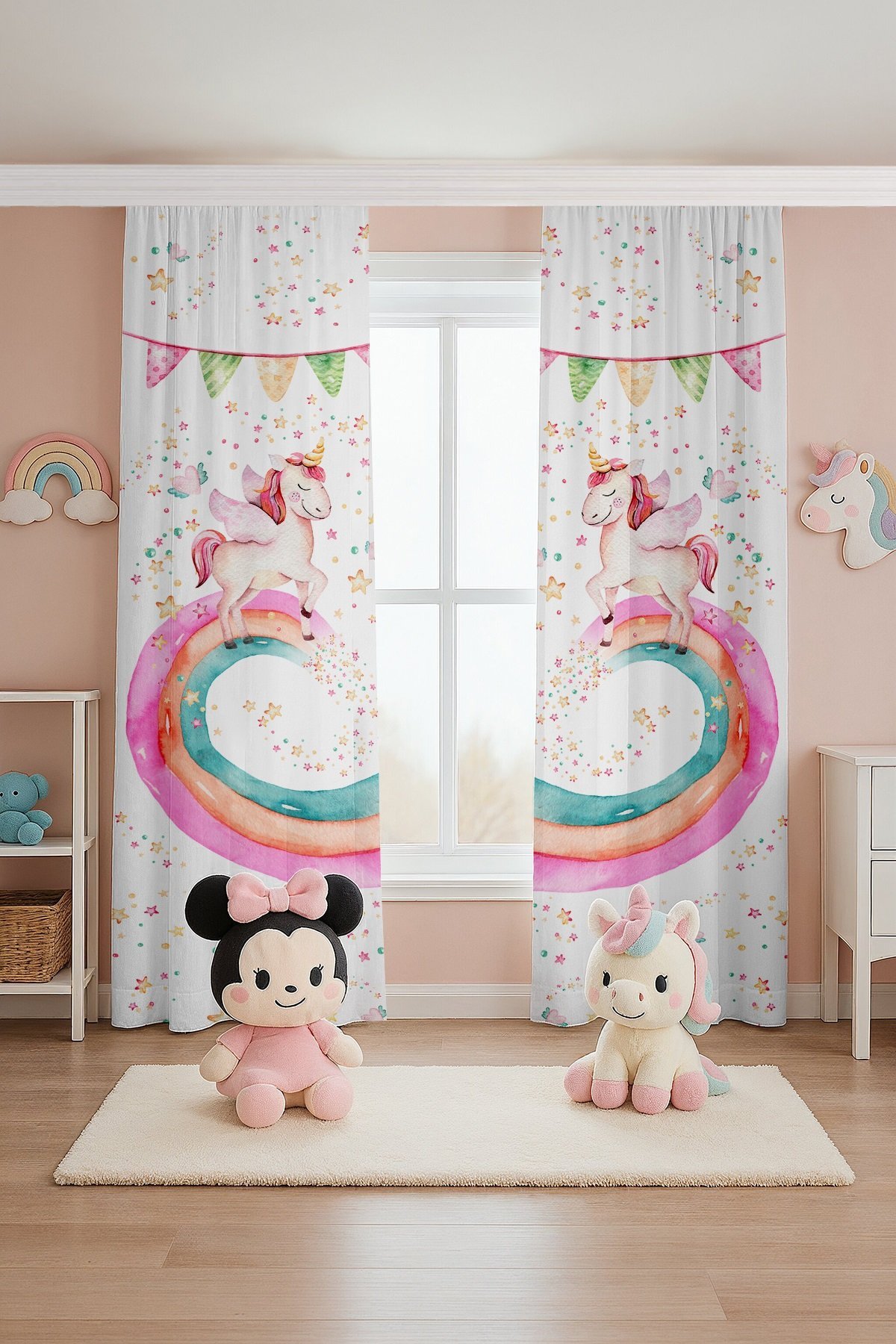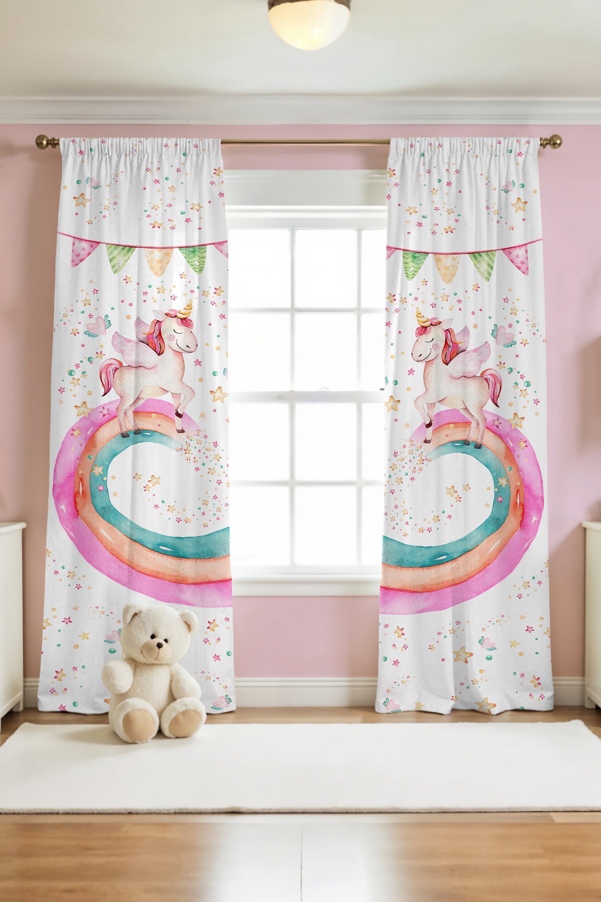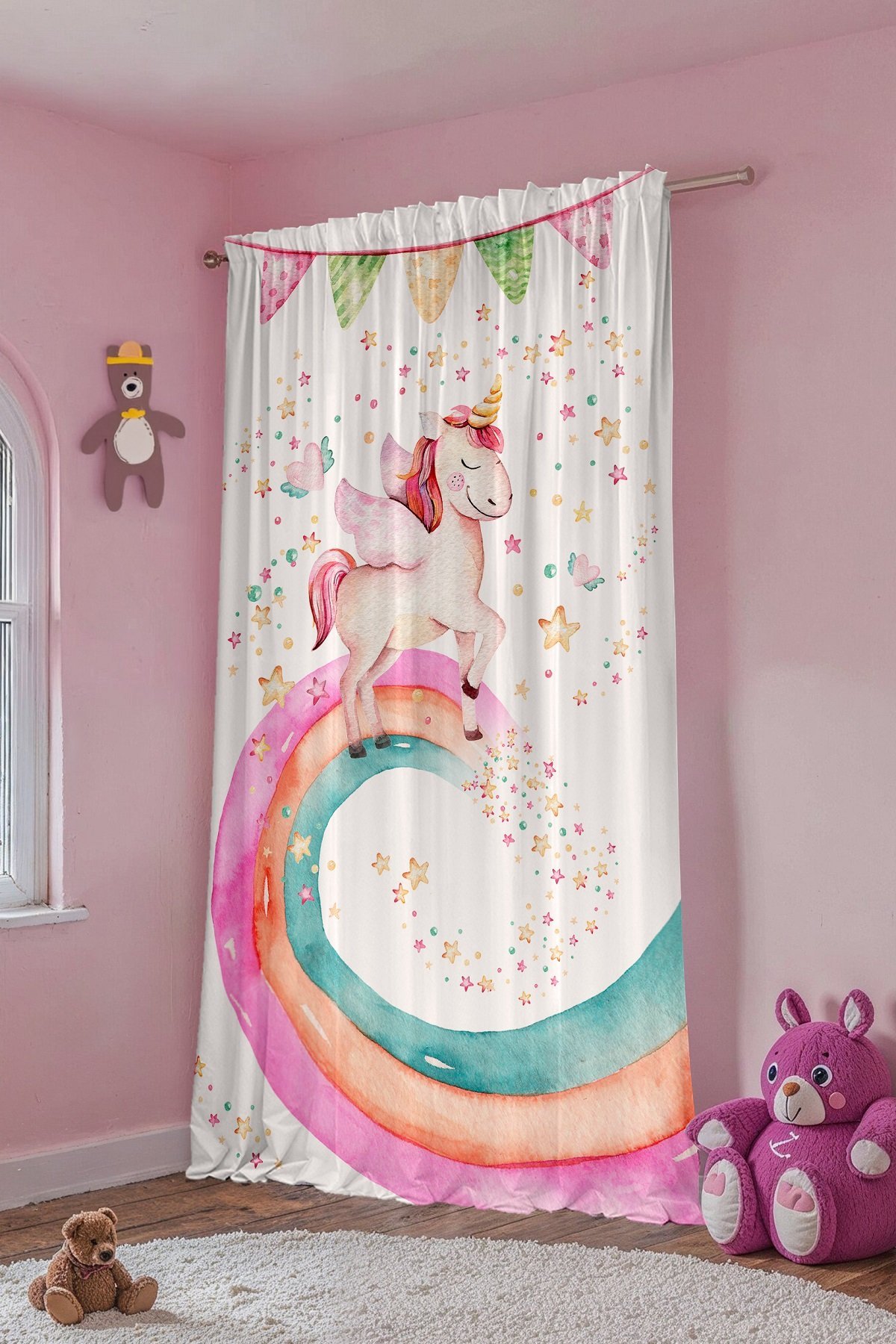 Uçan Unicorn Desenli Çocuk Bebek Odası Fon Perde (Tek Kanat Fiyatlandırma)