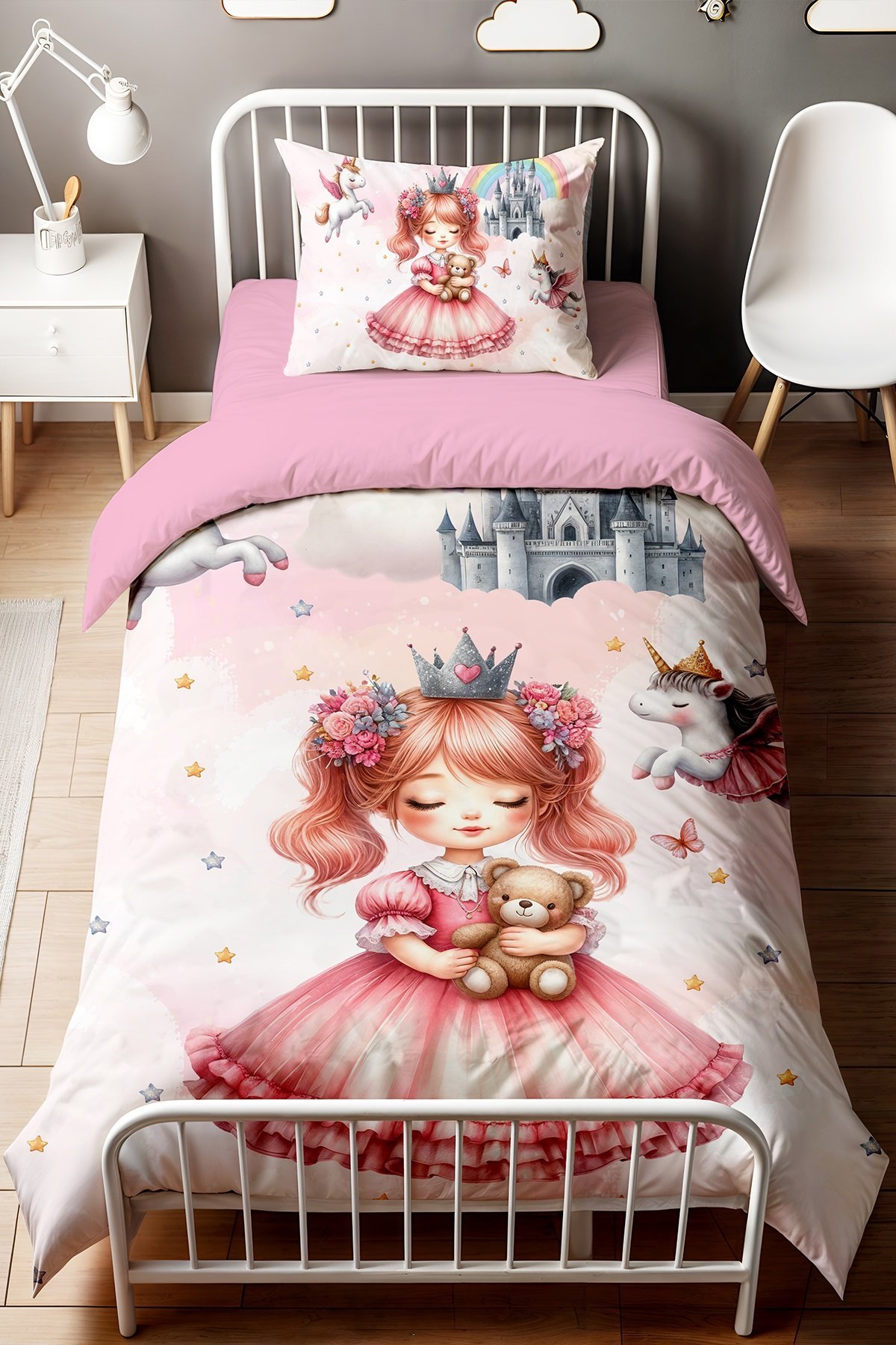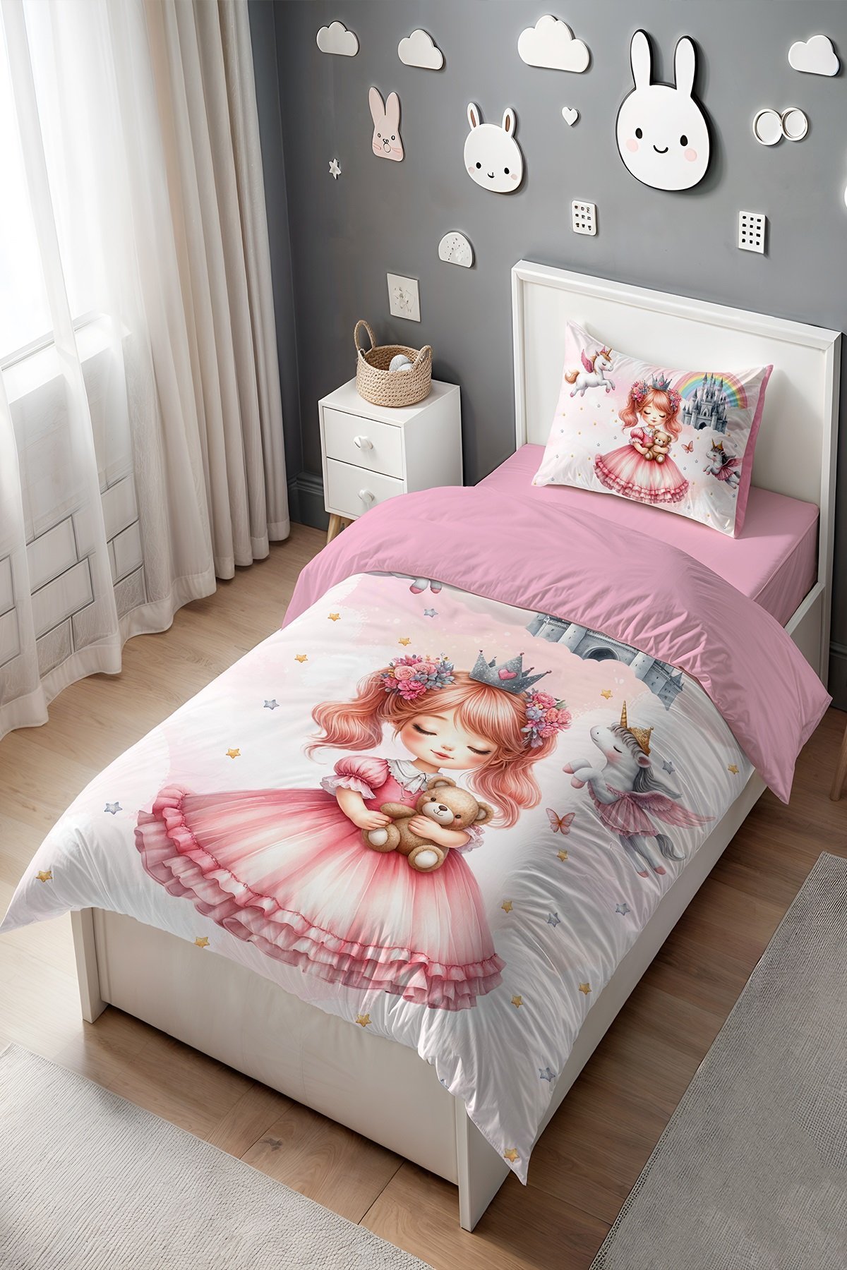 Uçan Unicornlu Prenses Desenli Tek Kişilik Bebek Çocuk Nevresim Seti