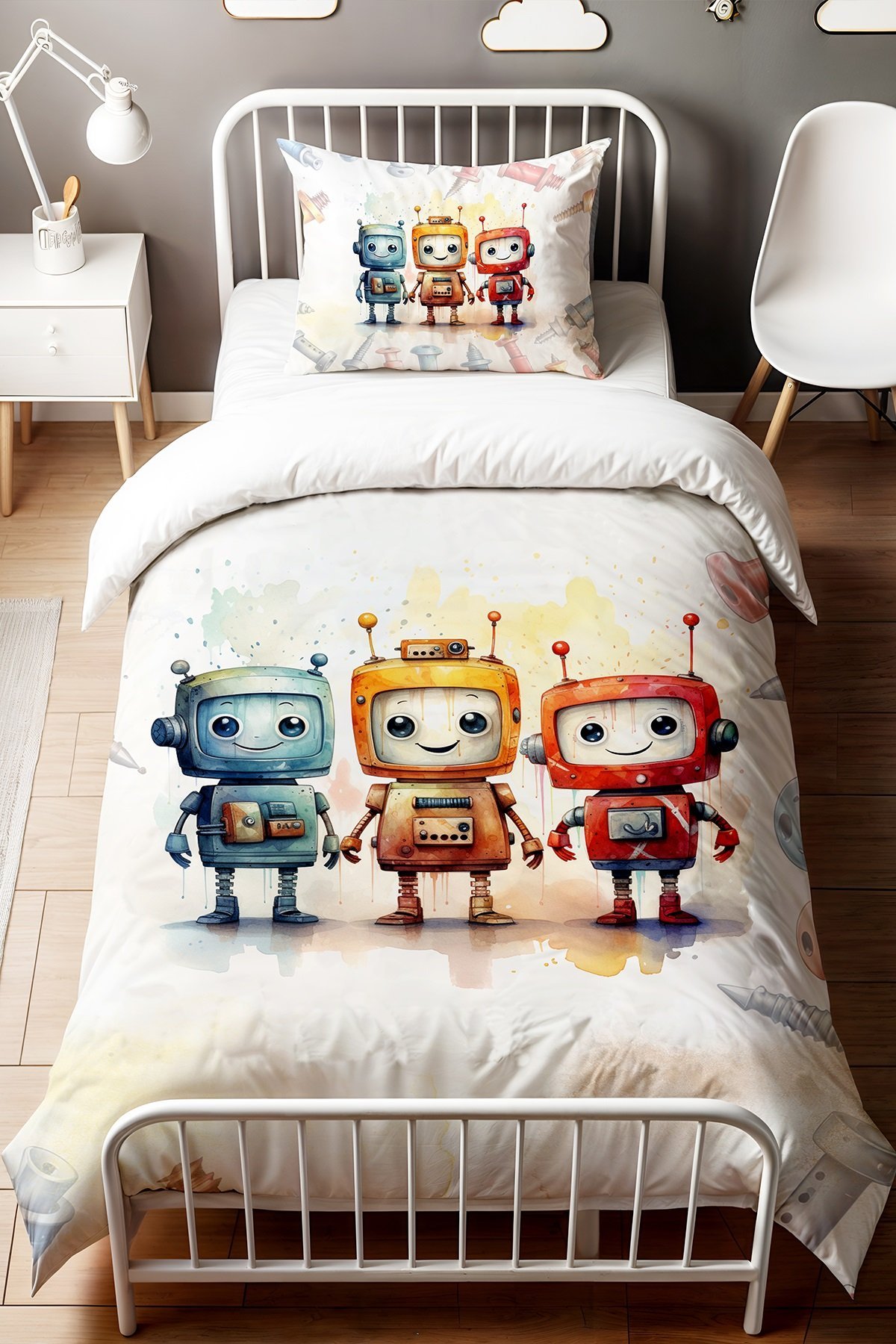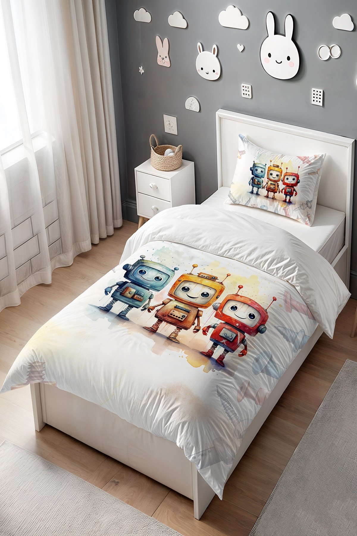 Üçlü Robotlar Desenli Tek Kişilik Bebek Çocuk Nevresim Seti