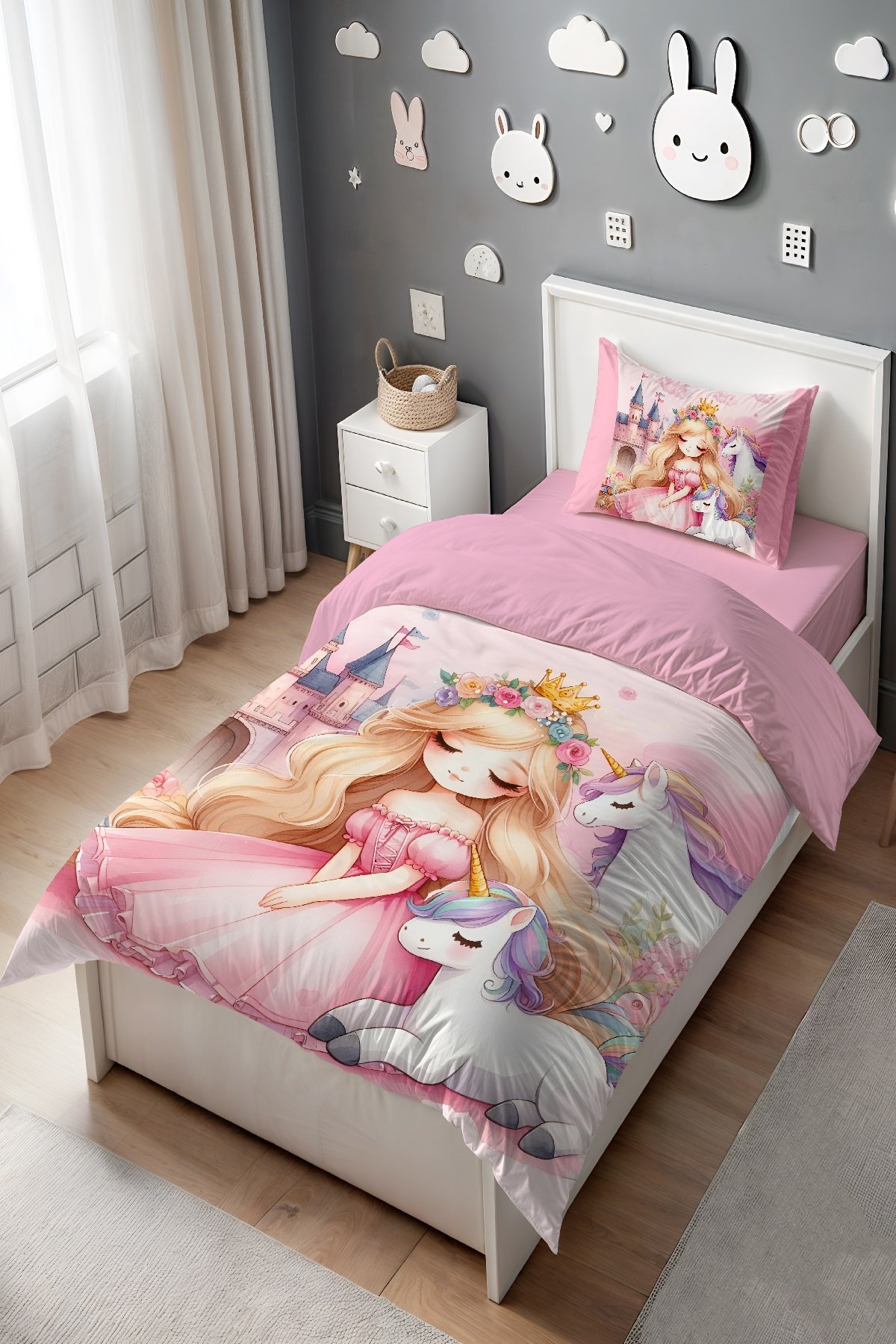 Unicornlu Prenses Desenli Tek Kişilik Bebek Çocuk Nevresim Seti