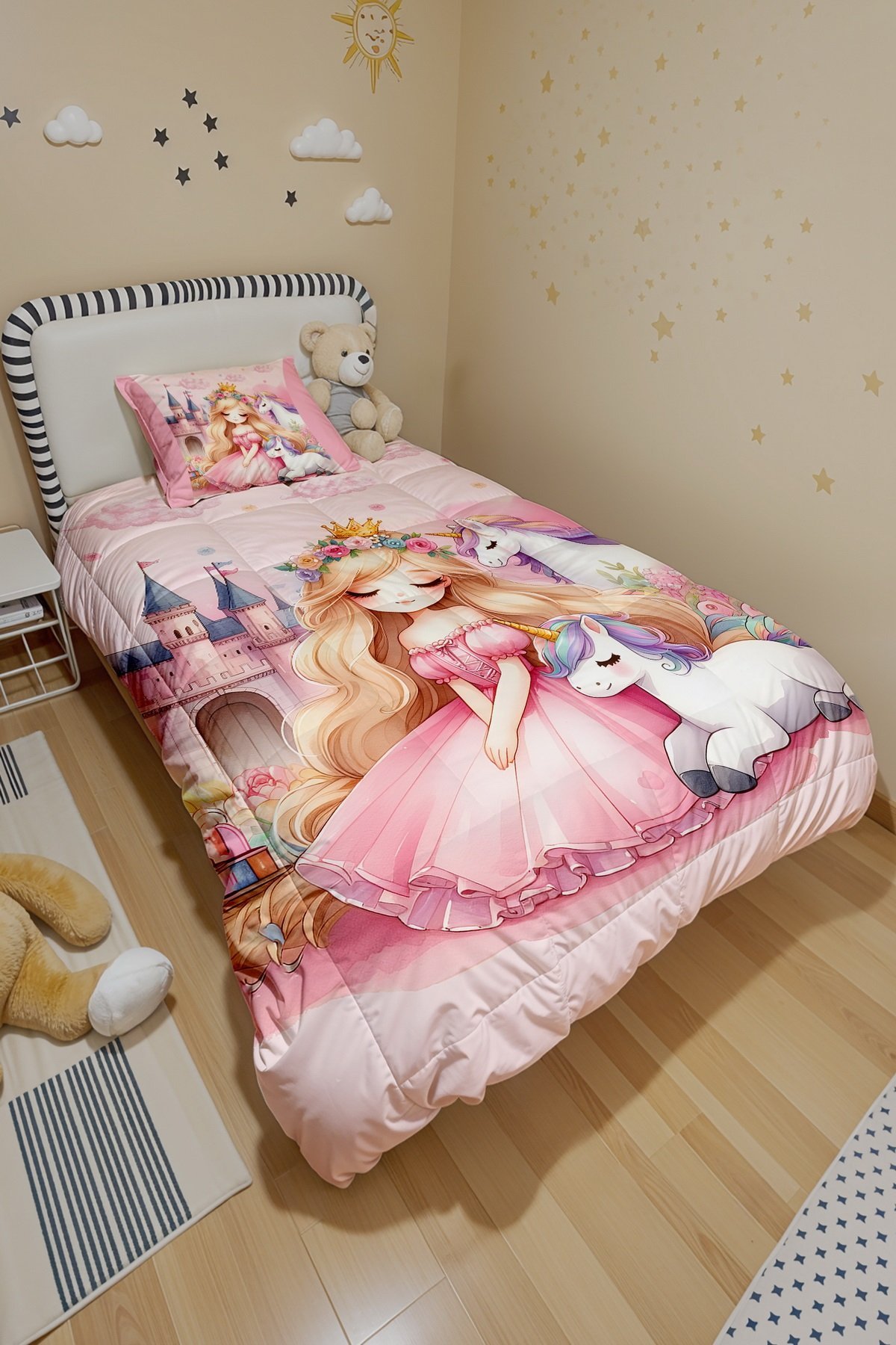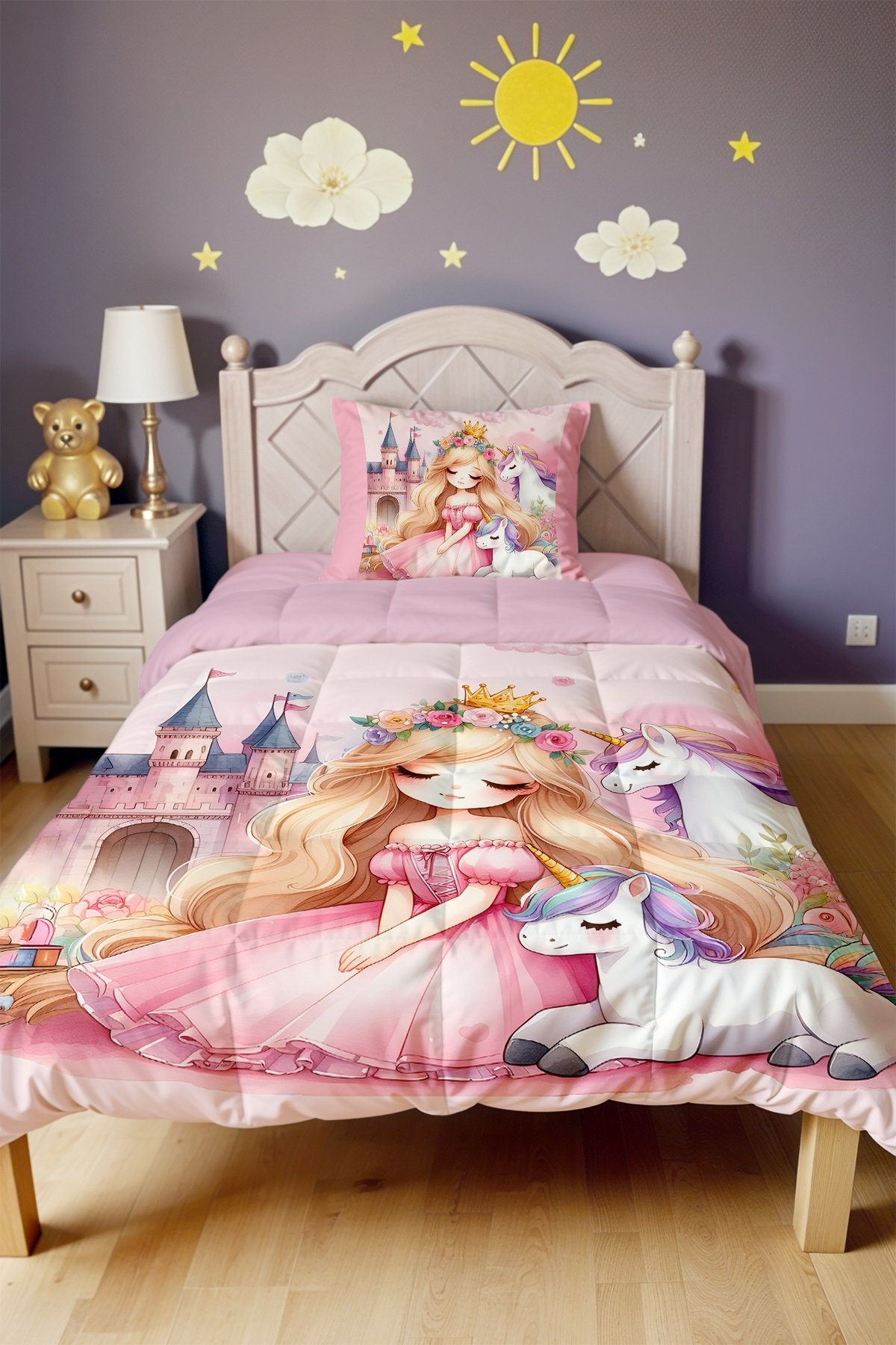 Unicornlu Prenses Desenli Tek Kişilik Yorgan ve Yastık Kılıfı