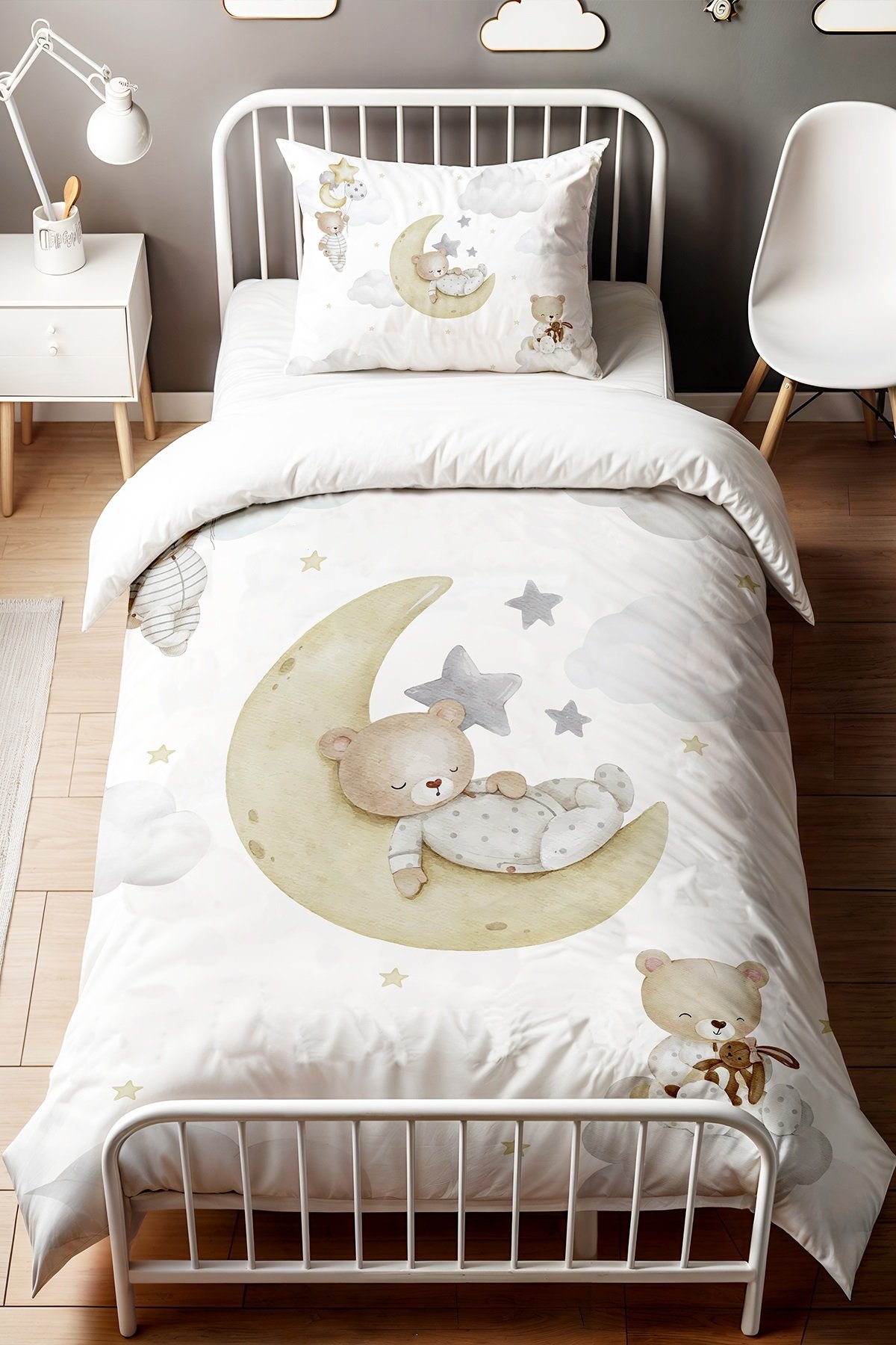Uykucu Ayıcıklar Desenli Tek Kişilik Bebek Çocuk Nevresim Seti