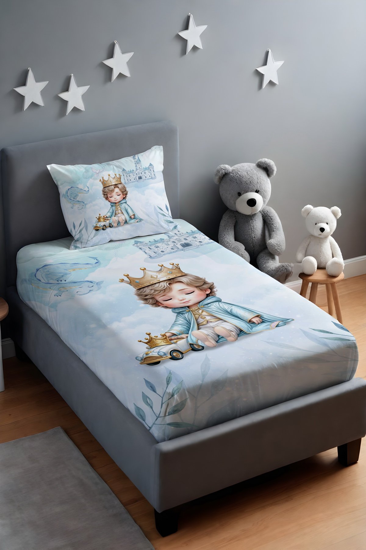Uyuyan Arabalı Prens Desenli Yatak Örtüsü ve Yastık Kılıfı