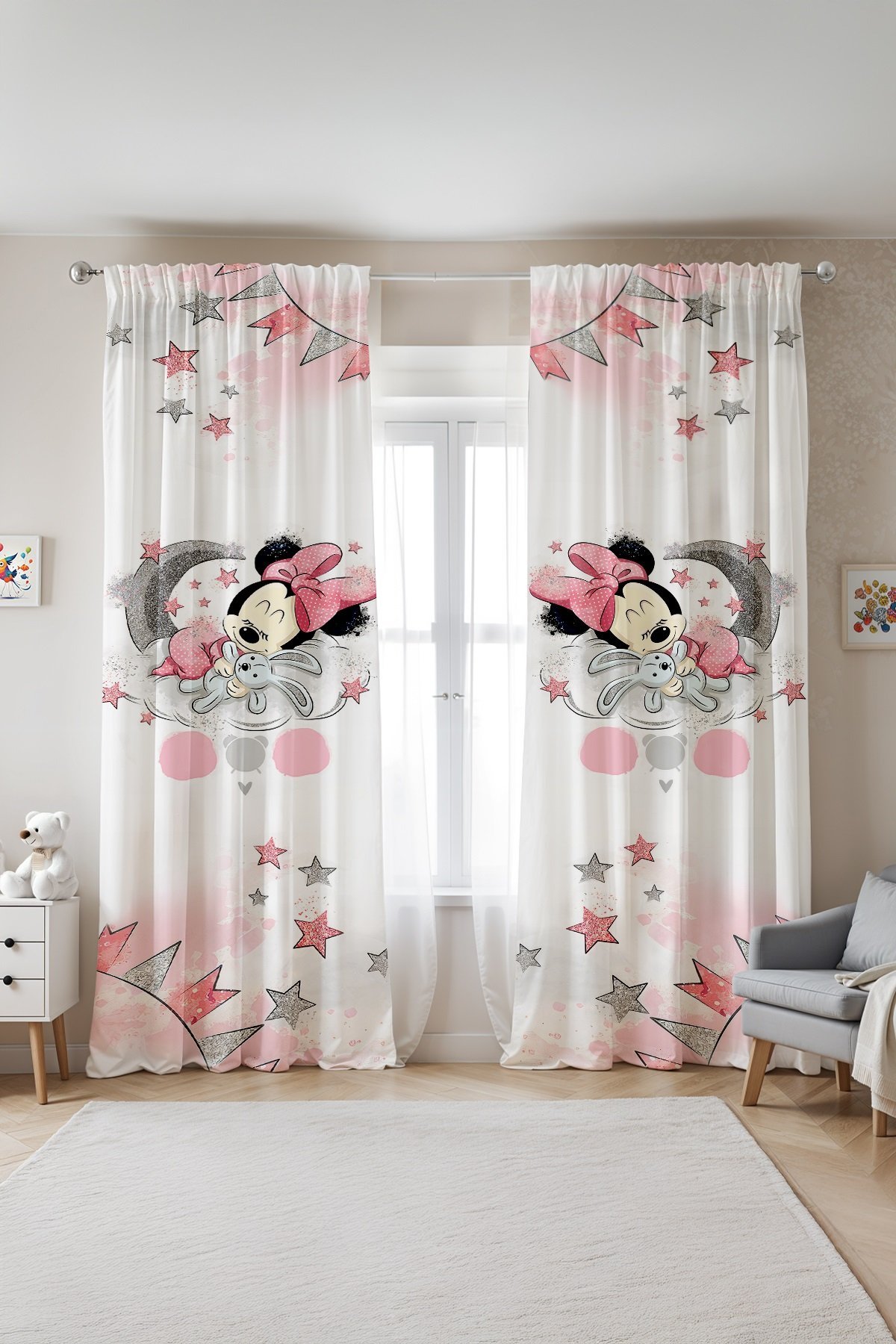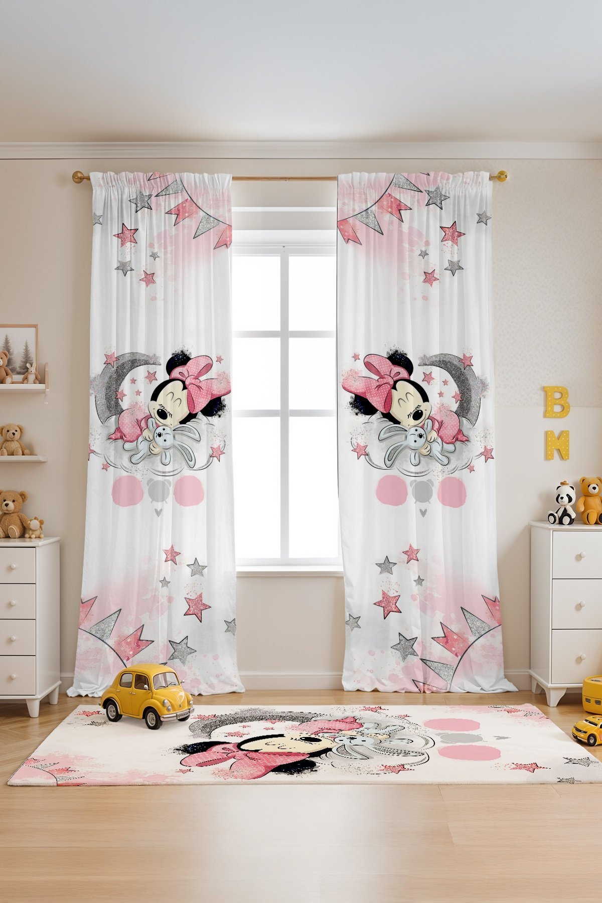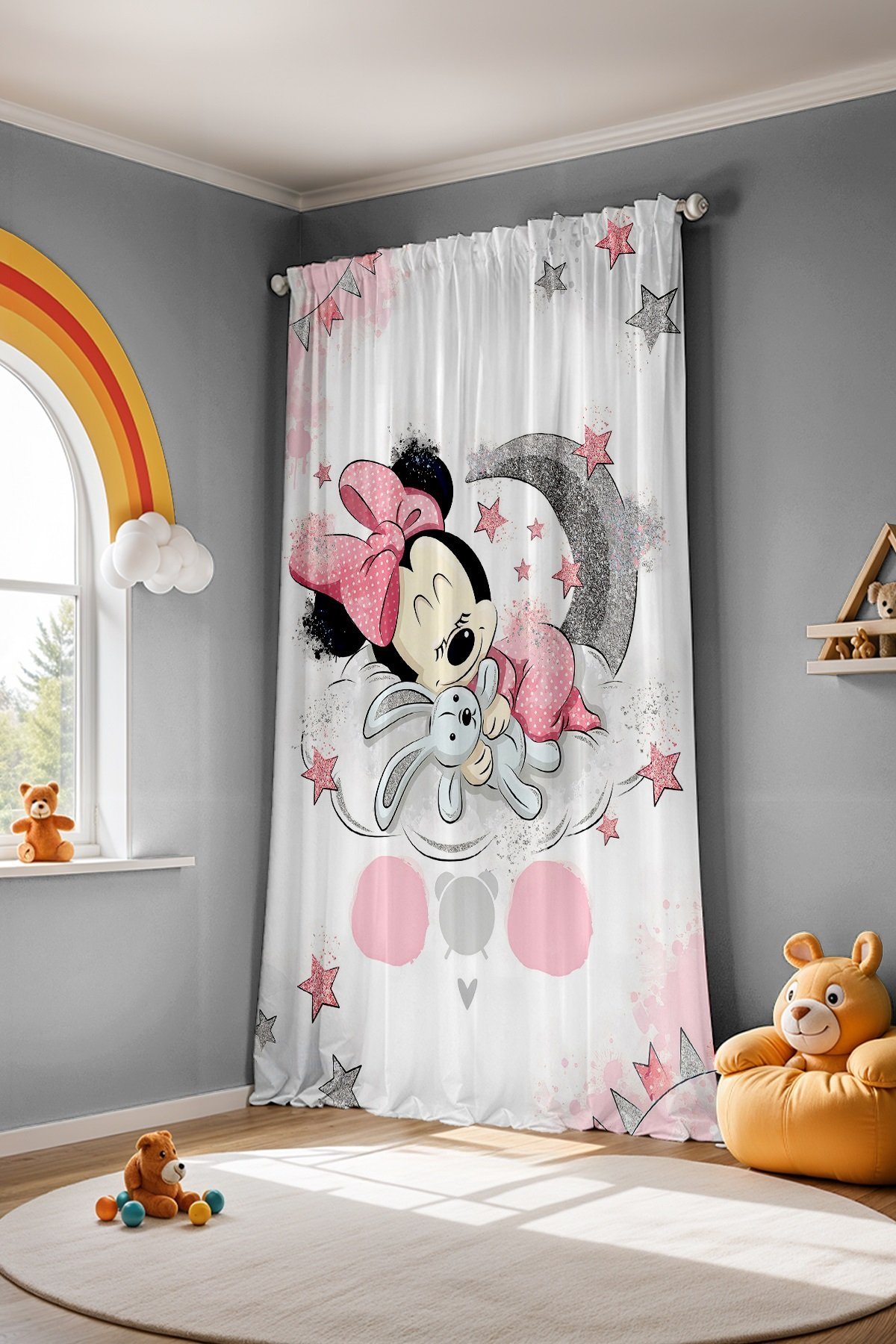 Uyuyan Minnie Desenli Çocuk Bebek Odası Fon Perde (Tek Kanat Fiyatlandırma)