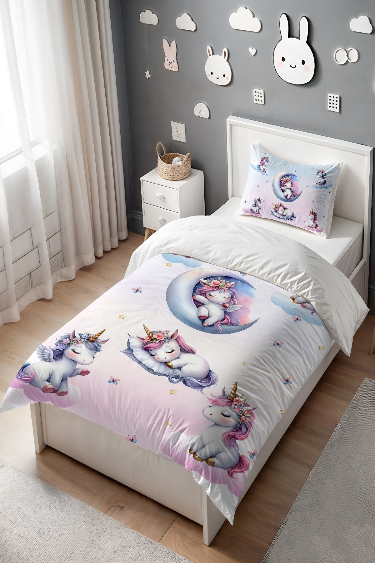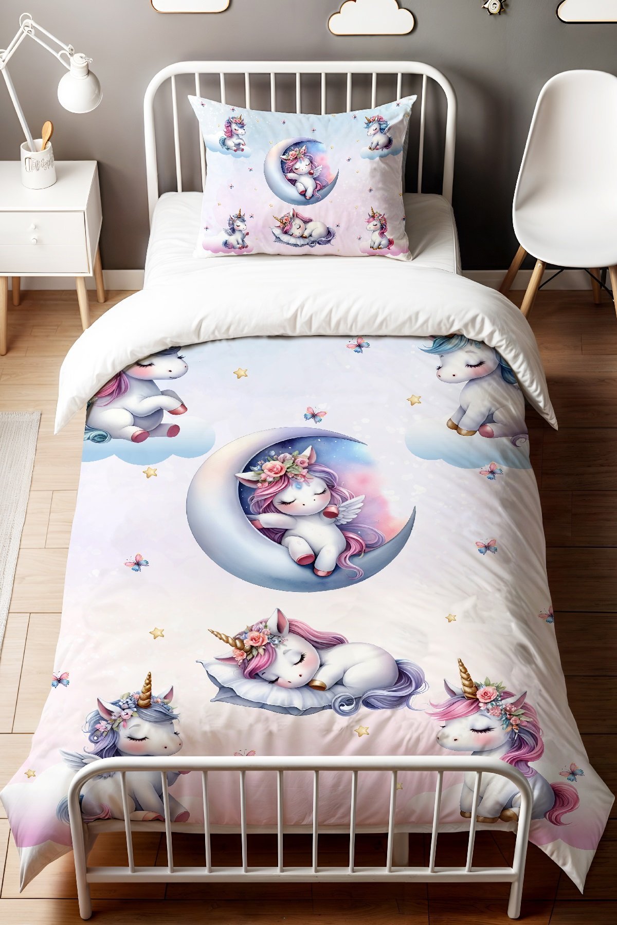 Uyuyan Unicornlar Desenli Tek Kişilik Bebek Çocuk Nevresim Seti