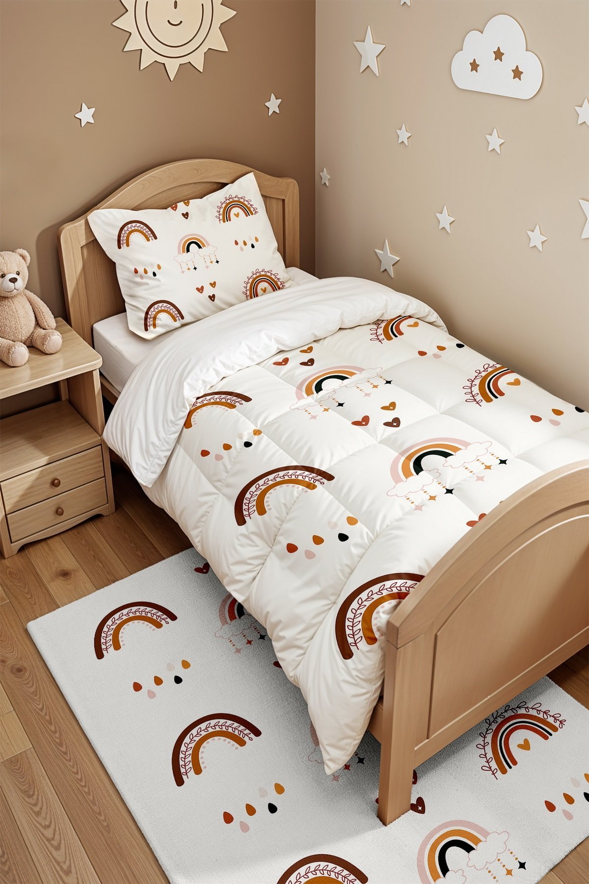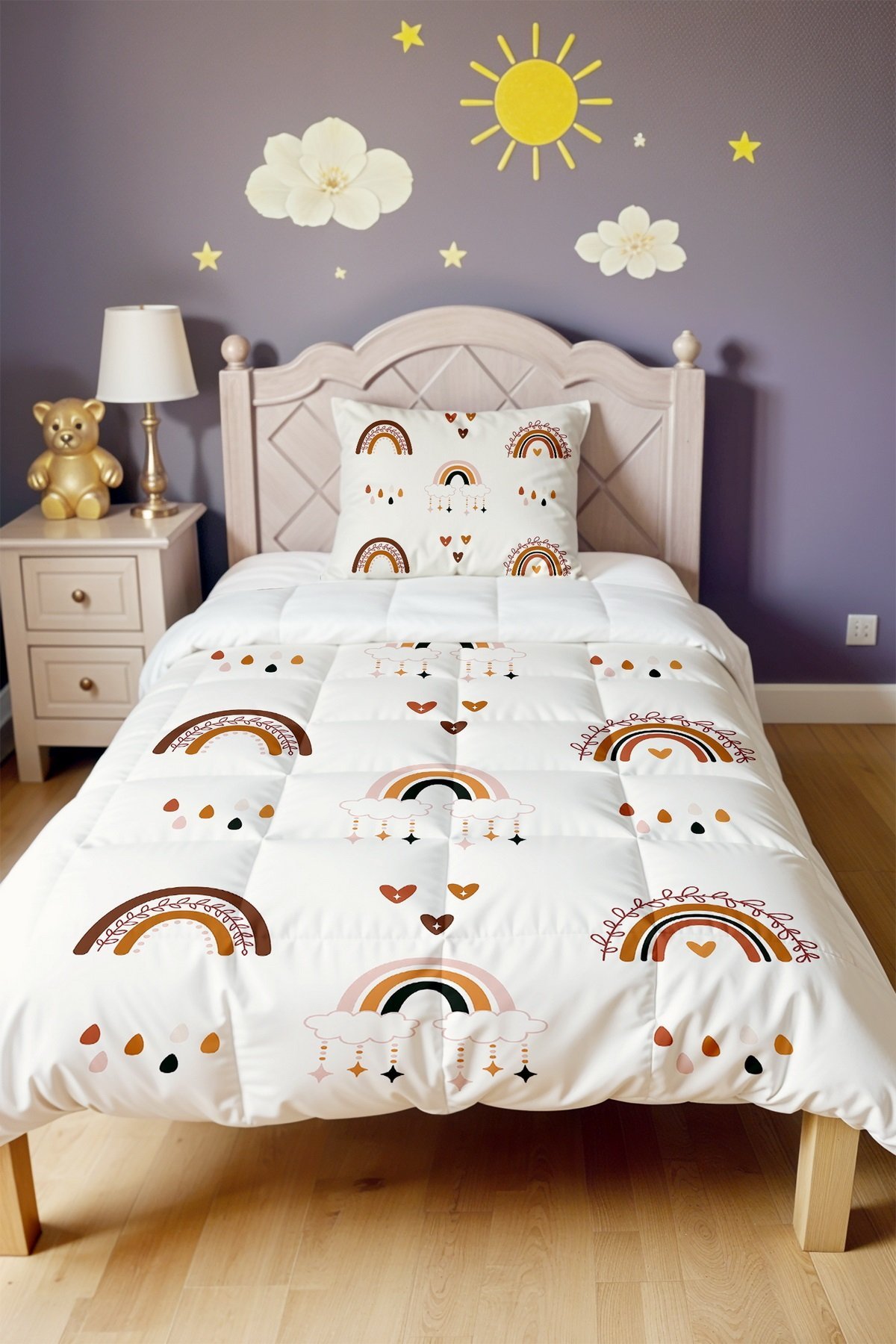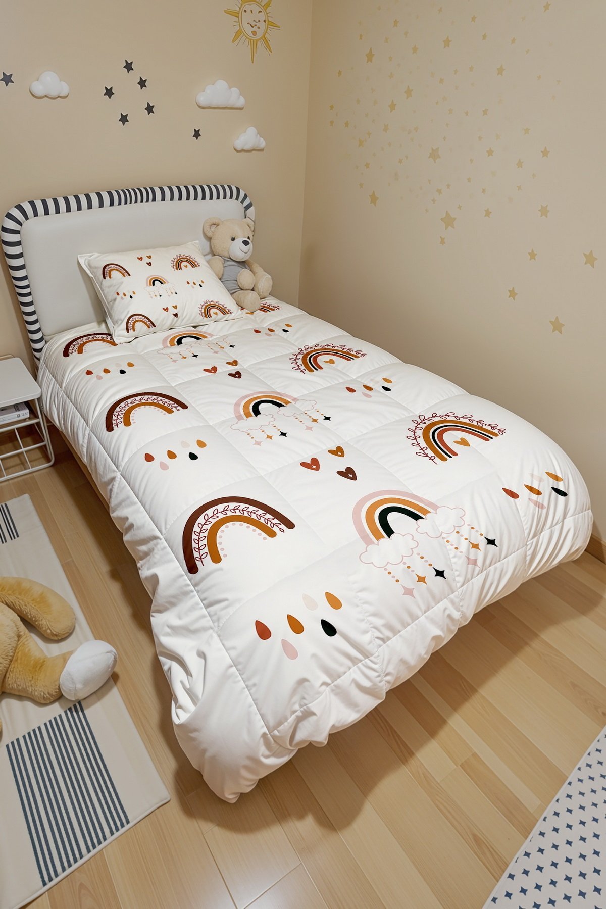 Yağan Gökkuşakları Desenli Tek Kişilik Yorgan ve Yastık Kılıfı
