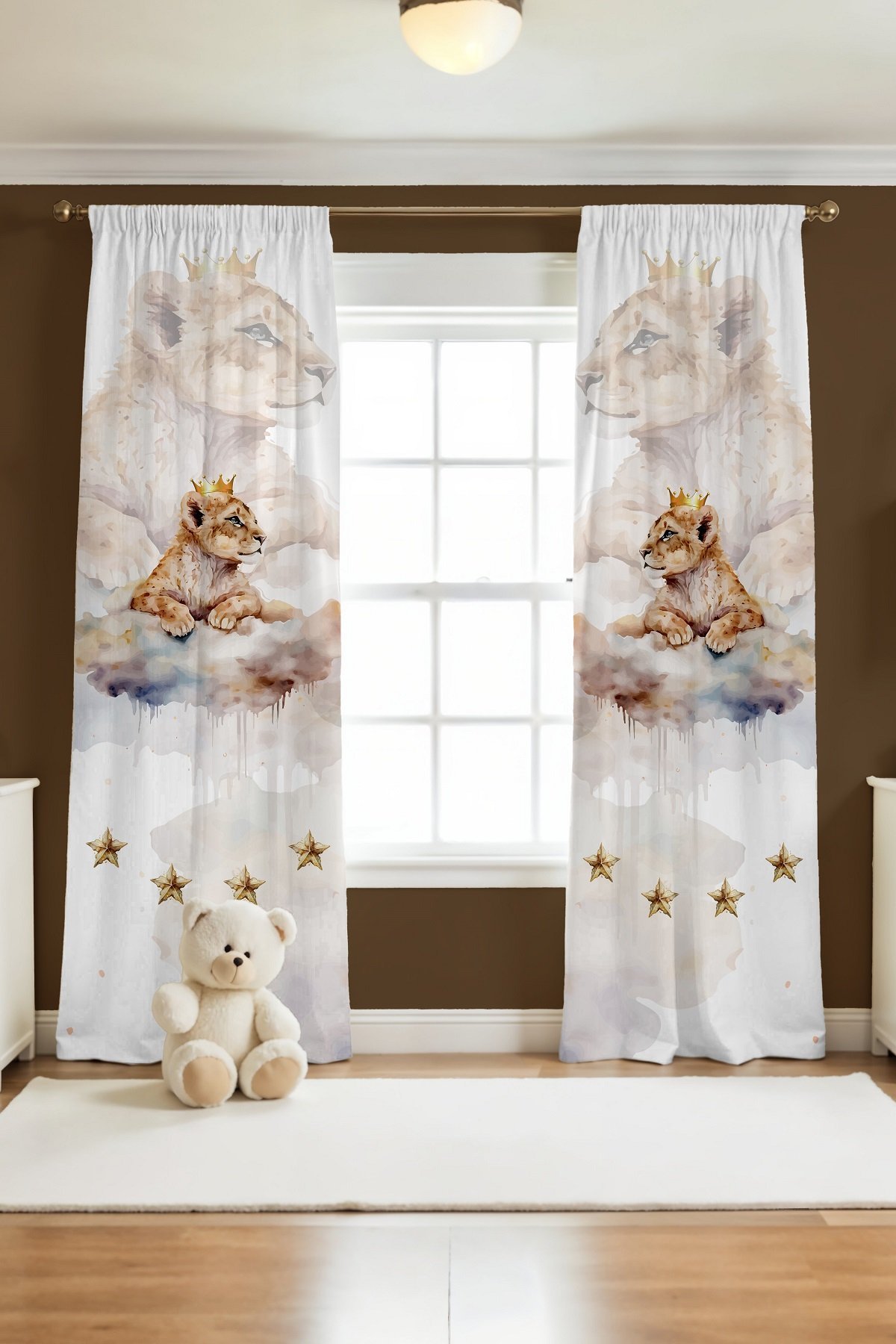 Yavru Kral Aslan Desenli Çocuk Bebek Odası Fon Perde (Tek Kanat Fiyatlandırma)