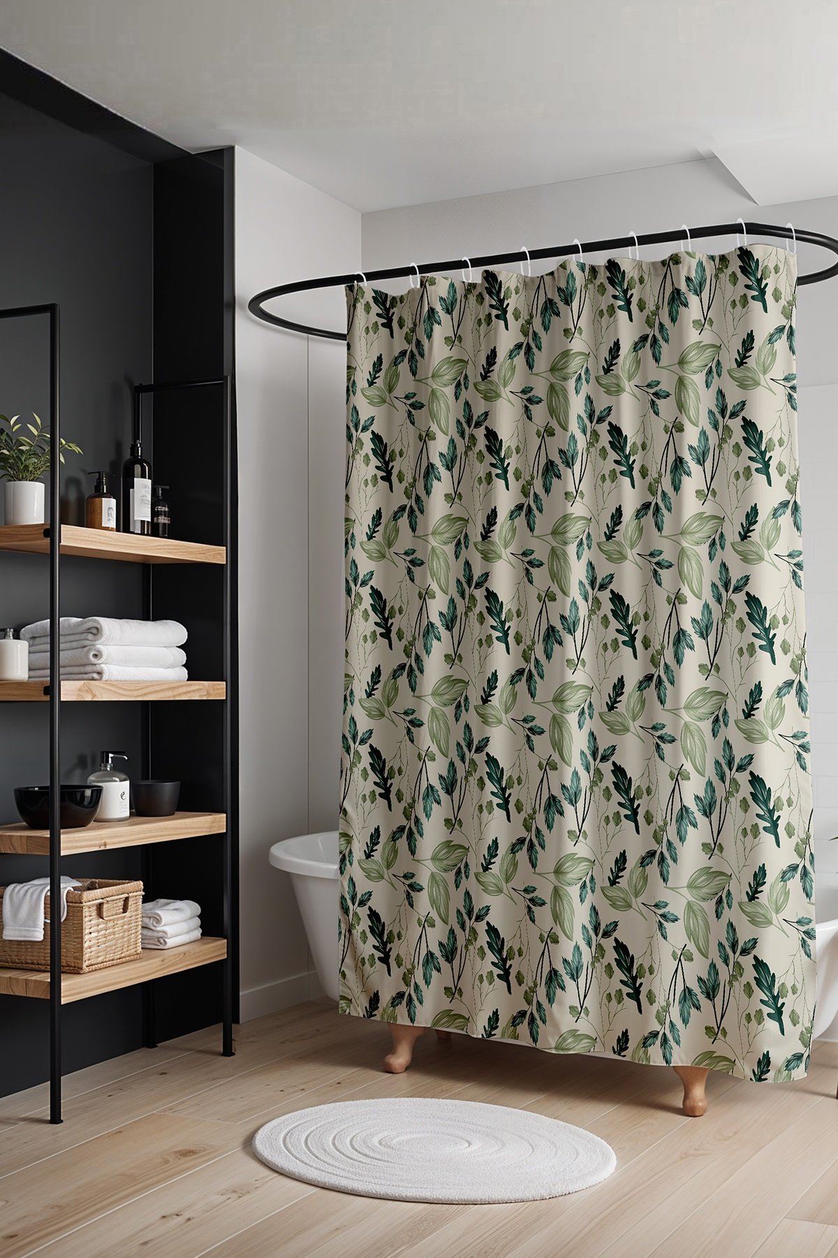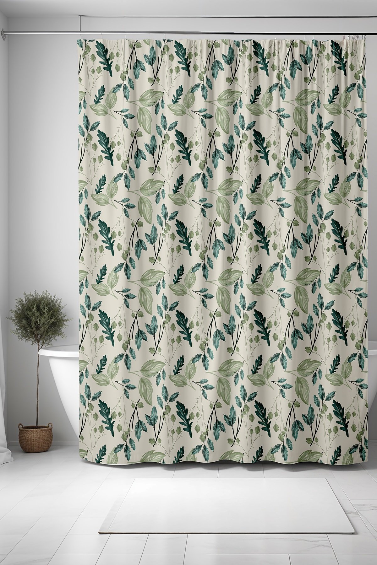 Yeşil Dökülen Yapraklar Desenli Duş Perdesi Küvet Perdesi 175x200cm