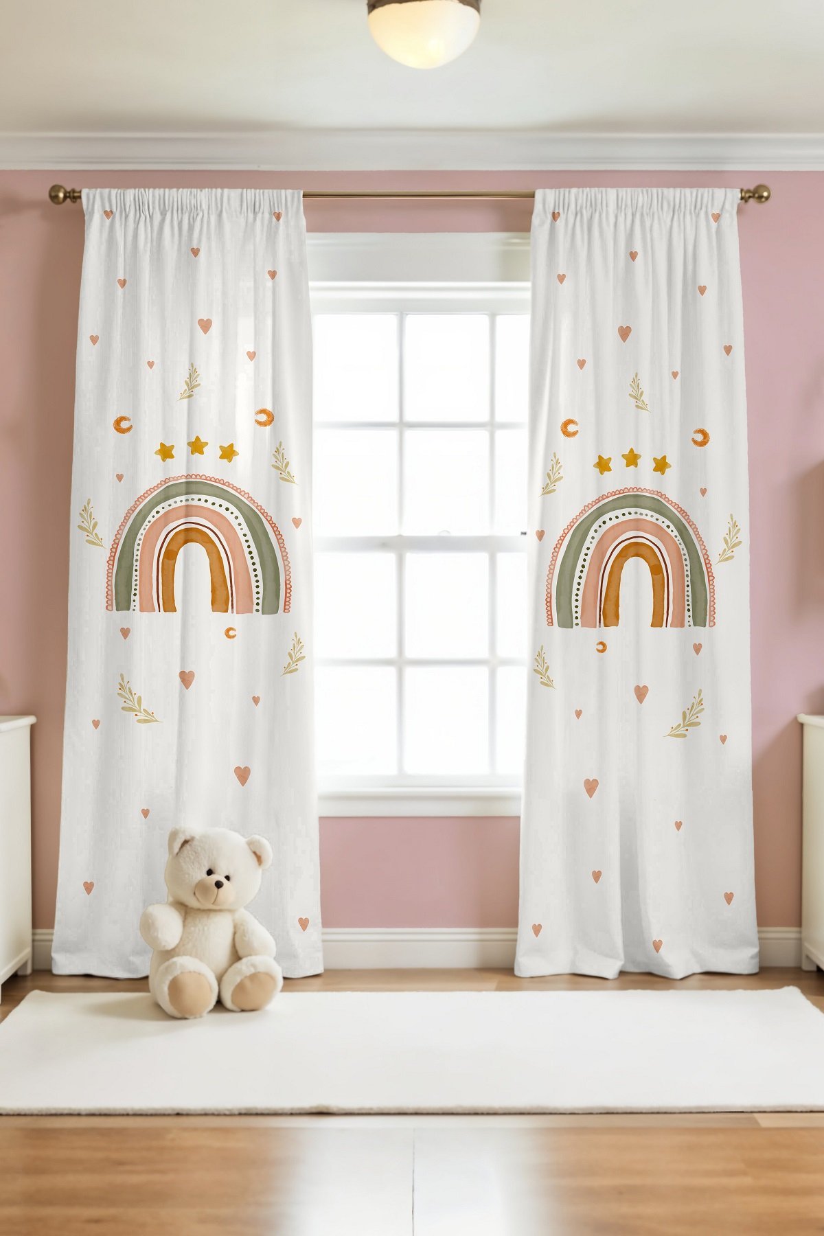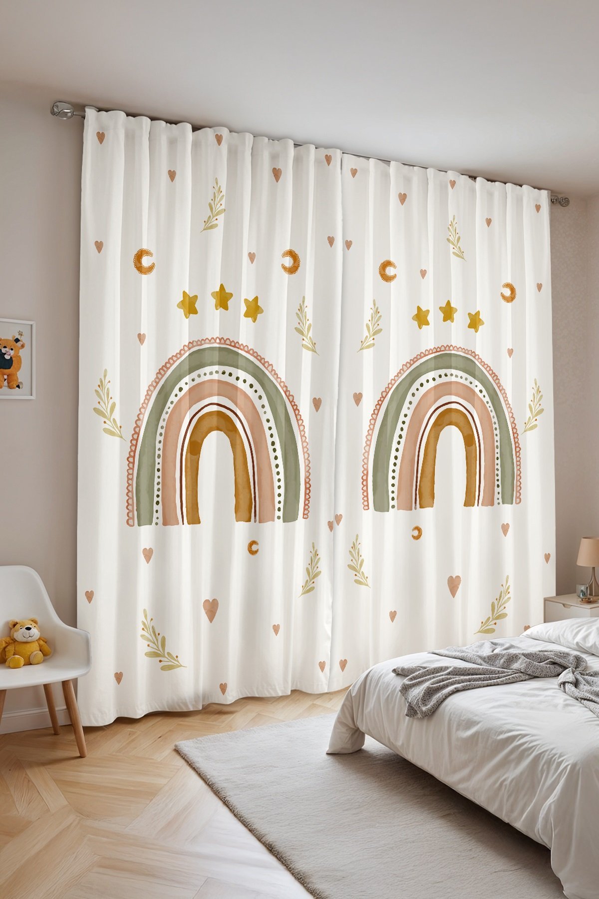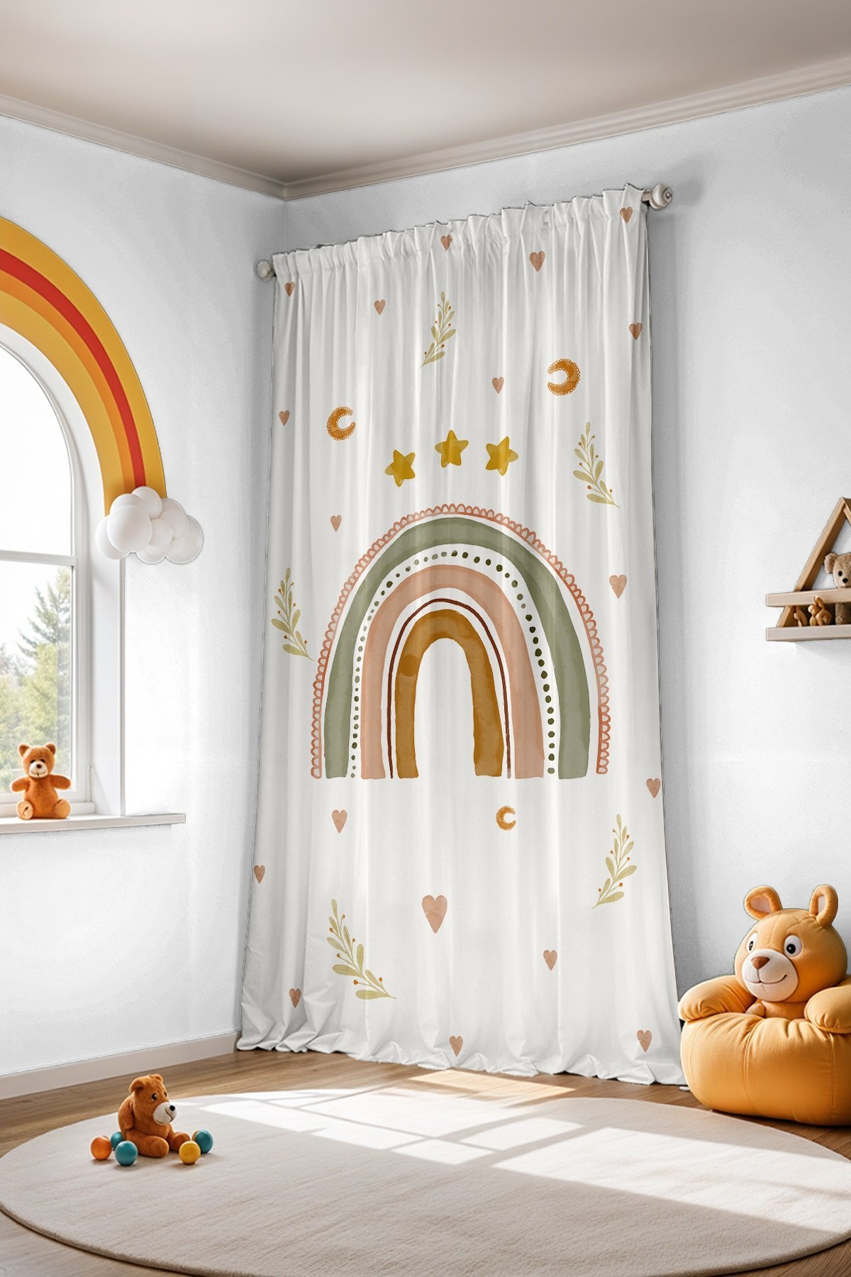 Yıldızlı Gökkuşağı Desenli Çocuk Bebek Odası Fon Perde (Tek Kanat Fiyatlandırma)