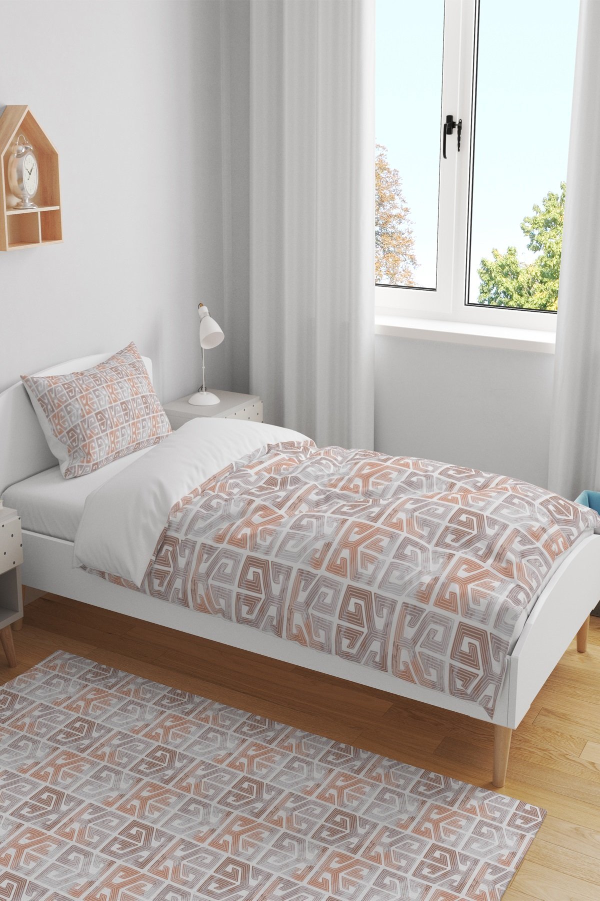 Yunan Kilit Desenli Tek Kişilik Bebek Çocuk Nevresim Takımı