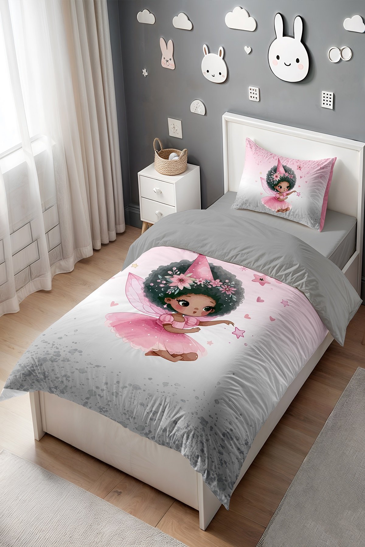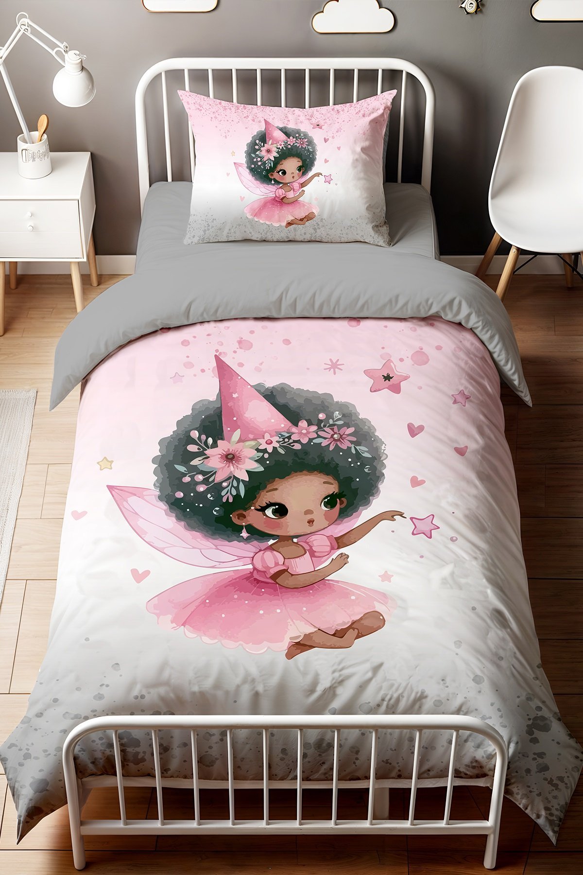 Zenci Peri Kızı Desenli Tek Kişilik Bebek Çocuk Nevresim Seti